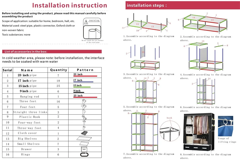 The shelves made of quality non-woven fabric, non-woven fabric cover is easy to clean with a damp cloth.