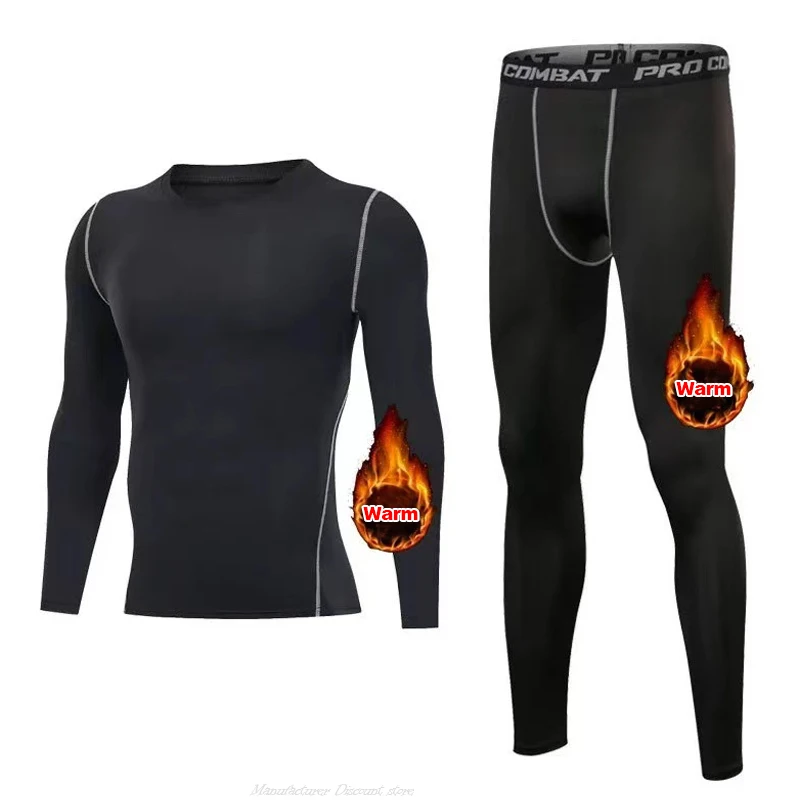 New Winter Warm Men Undershirts Fleece Thermal Underwear Set Long Johns Elastic Compression Tights Fitness Sprots Tracksuit Set