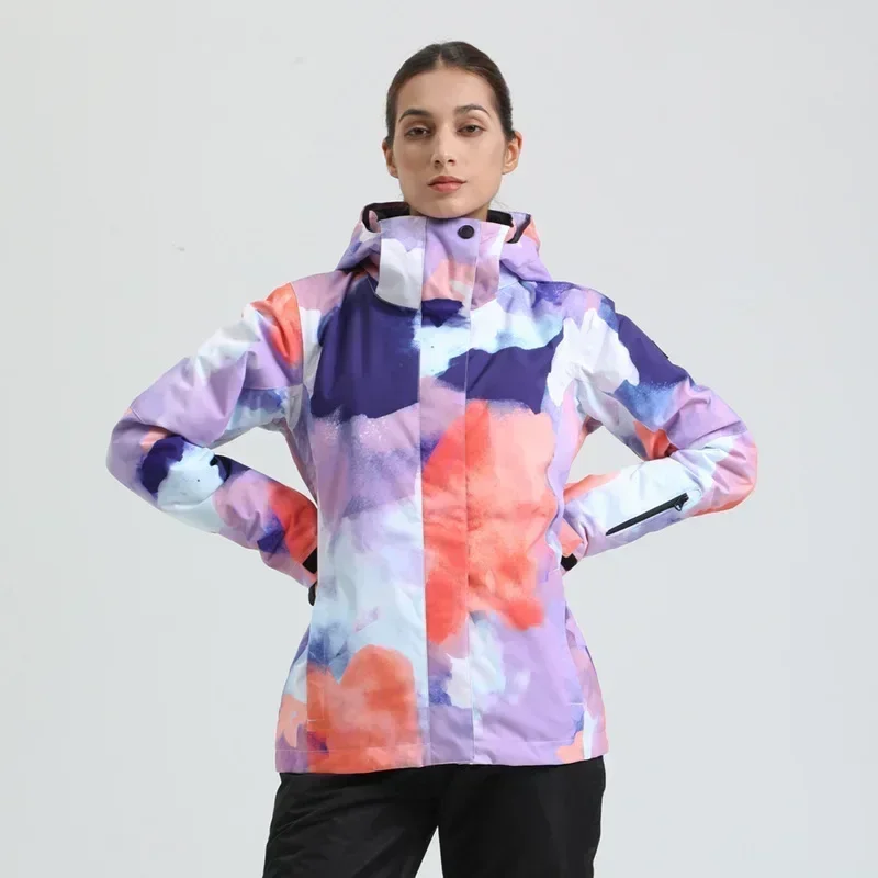 New Winter Woman Skiing Jackets 2025 Outdoor Warm Windproof Hooded Zipper Ski Sport Waterproof Outerwear Snow Print Female Coats