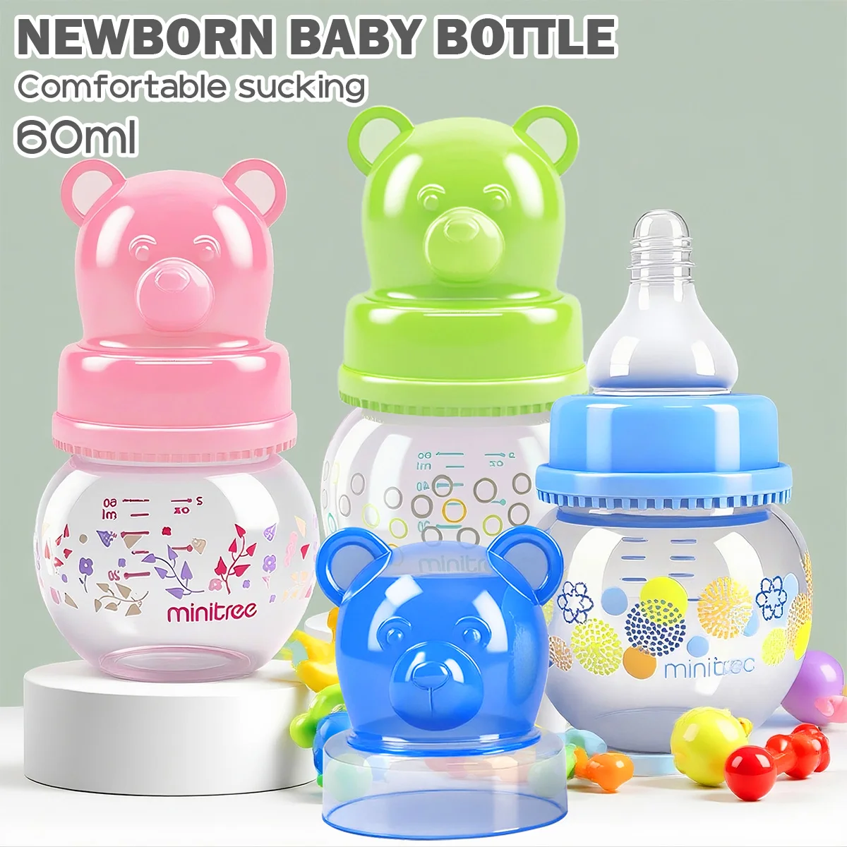 Unique and cute creative cartoon bear shaped milk bottle, 60ml wide caliber PP material milk bottle, free of bisphenol A, convenient to carry, newborn gift,