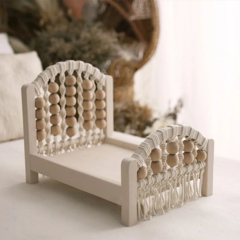 Newborn Photography Furniture Retro Hand-woven Wooden Beaded Bed Assisted Posing Crib Photo Props Studio Baby Photoshoot Tool