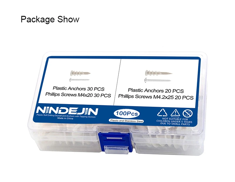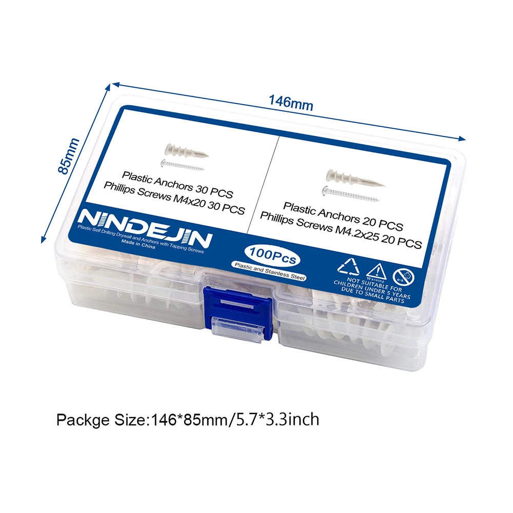 NINDEJIN 100pcs/set Self-drilling Drywall Plastic Anchors With Screw Kits Plasterboard Anchors Home Curtain Drywall Tool