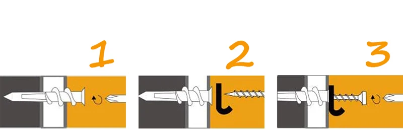 2. Drill point pre-drills precise hole in wood or double drywall etc. No hole preparation required;