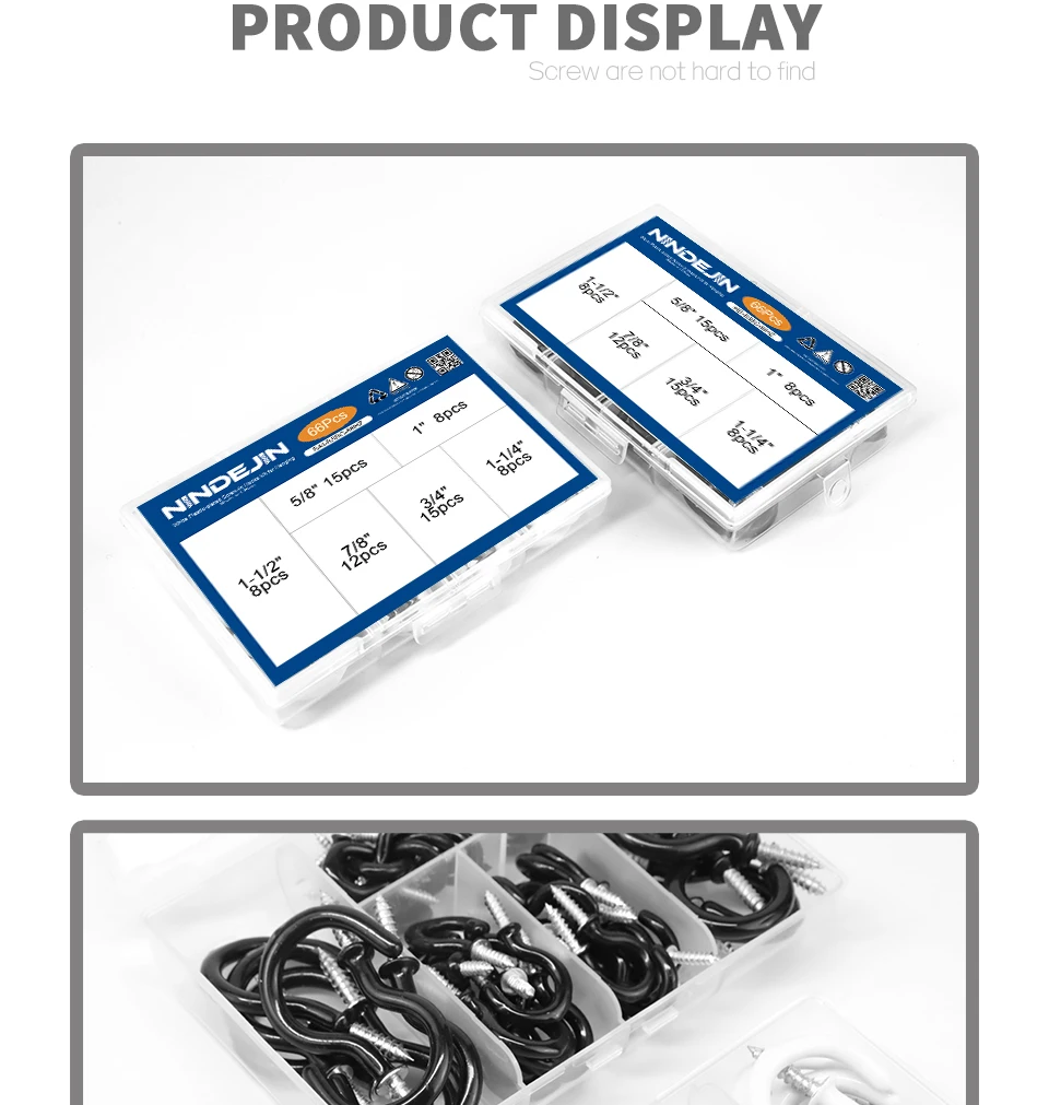 NINDEJIN 66pcs Screw hooks 3/4″-1-1/2″ Black White Heavy Duty Screw in Hook Hanger Wood Wall Ceiling Hooks for Kitchen Shelf