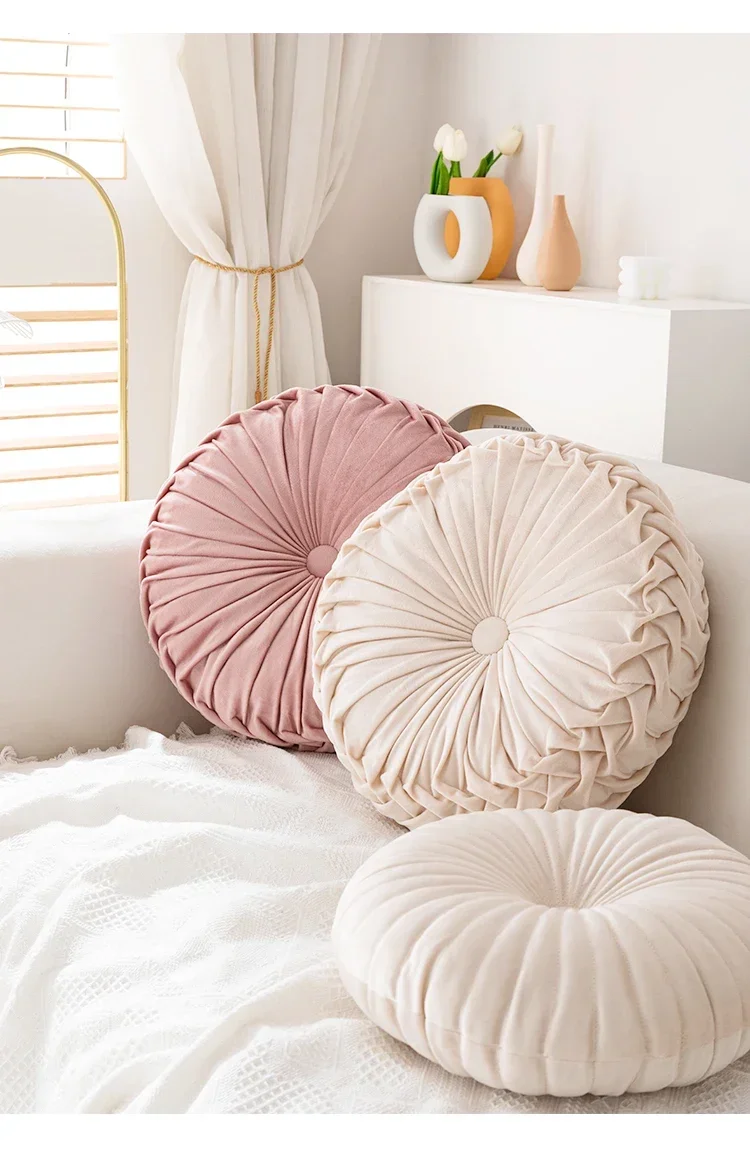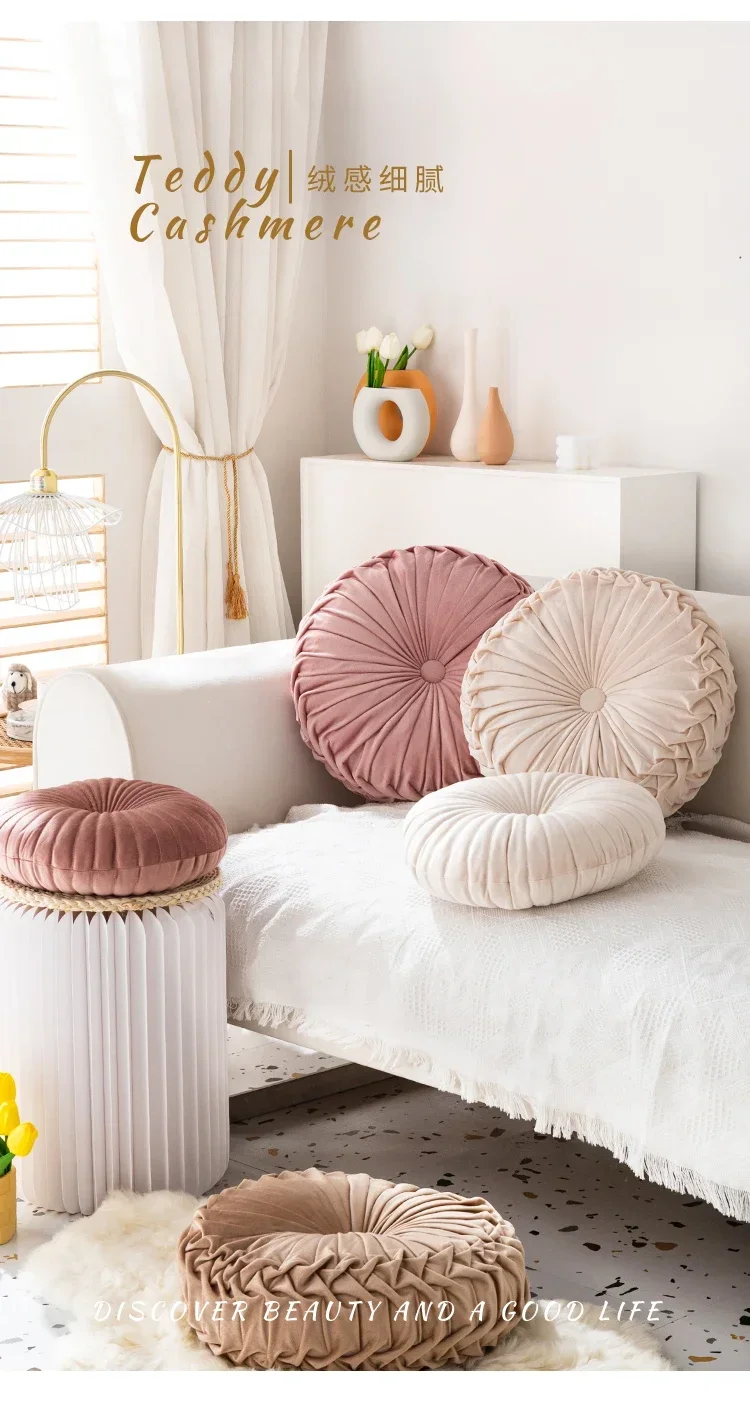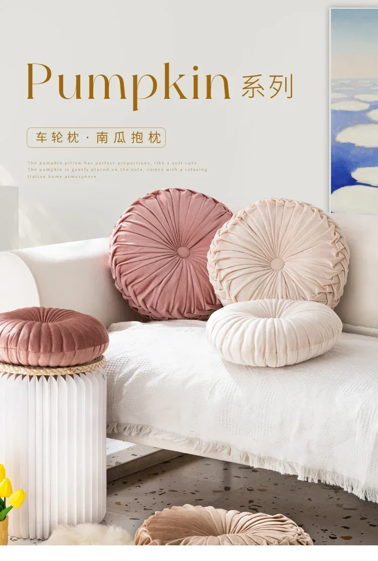 Nordic Ins Pumpkin Pillow Round Pillow Pink Seat Cushion Waist Pillow Living Room Sofa Homestay Decoration Wheels PuTuan