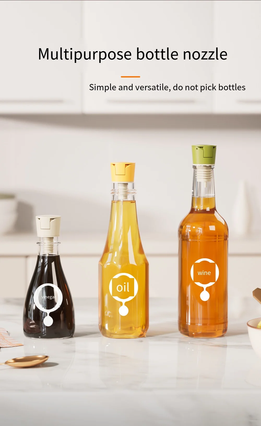 2. Efficient Dispensing: Simplify your cooking experience with our revolutionary multifunctional pour spout. Pour oil, sauce, or wine effortlessly and precisely from any bottle, making it a versatile addition to your kitchen. Its design is suitable for a wide range of bottles, making it the ideal multifunctional oil distributor.
