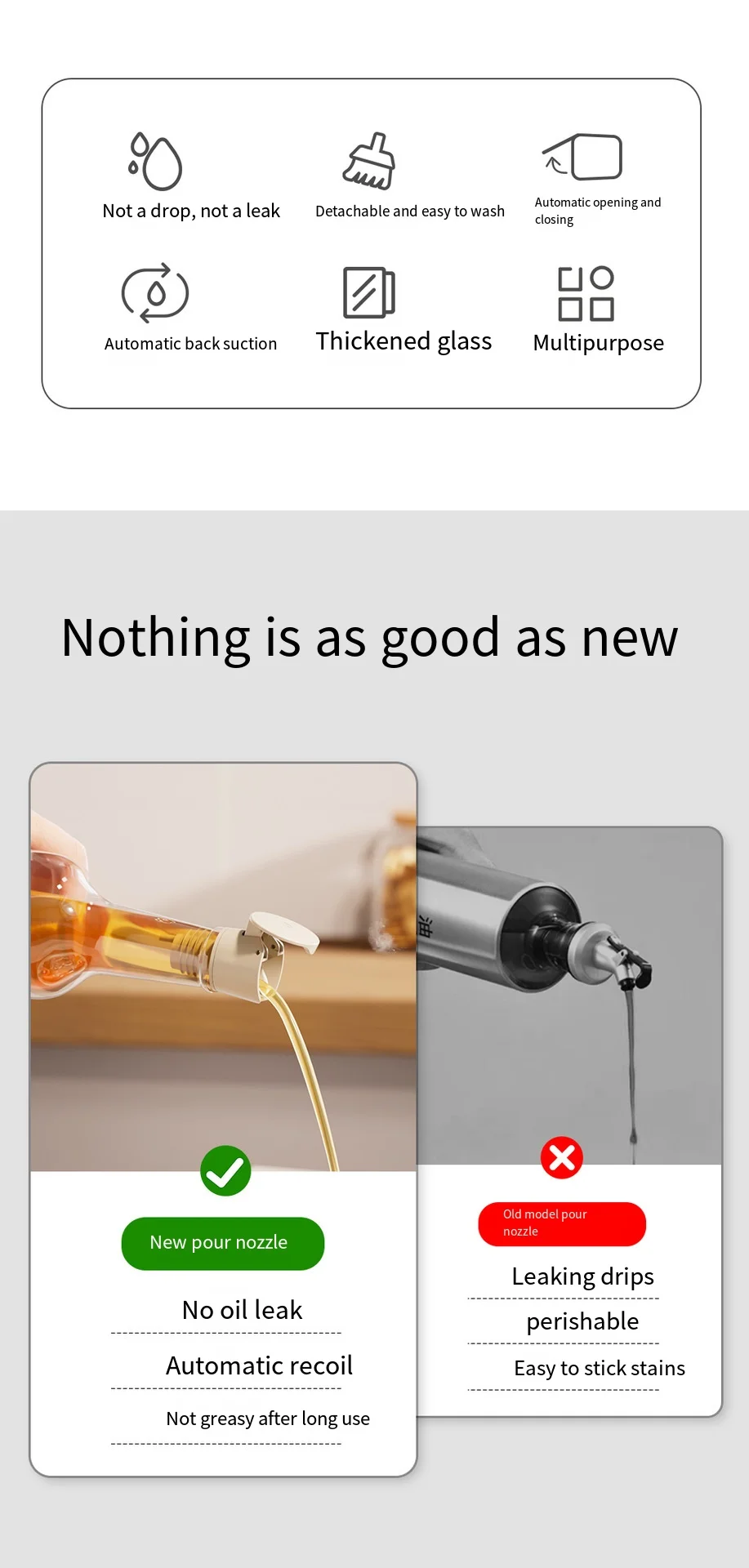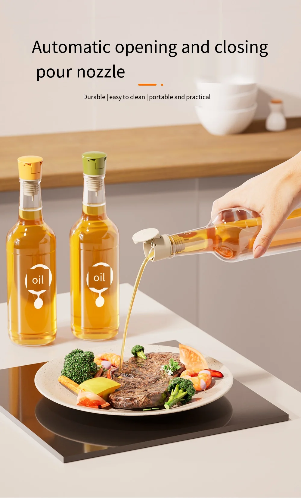 Upgrade your cooking game with our automatic opening and closing oil bottle spout! Made with high-quality materials and hassle-free sealing mechanism, it's easy to use and improves the cooking experience. Say goodbye to spills with this efficient oil distributor!