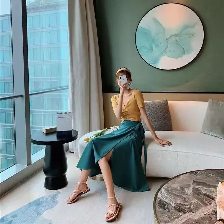 4 reviews for One Piece Split Print Lace Wrap Y2K Skirt Holiday Women High Waist Bodycon Skirt Irregular Beach Skirt