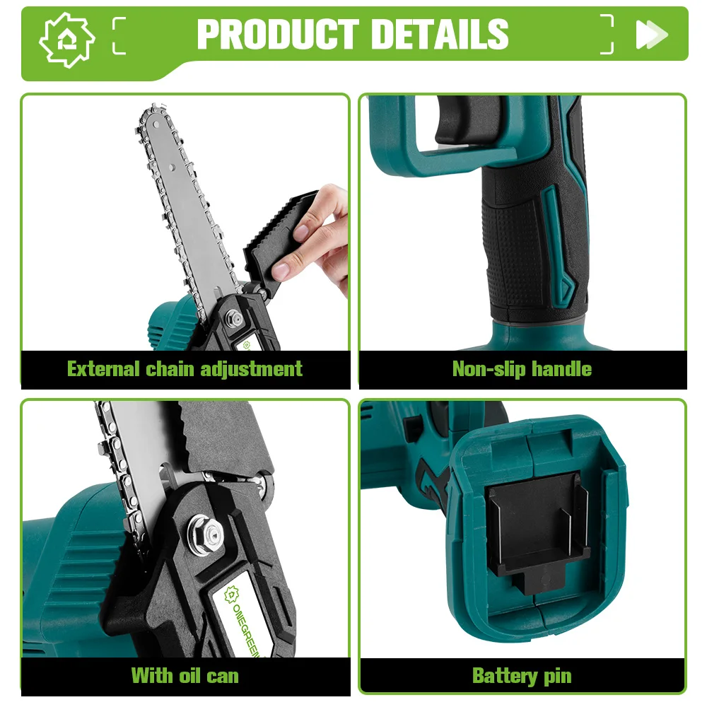 -Rechargeable electric chain saw, light and portable, long battery life, will not damage the bark.