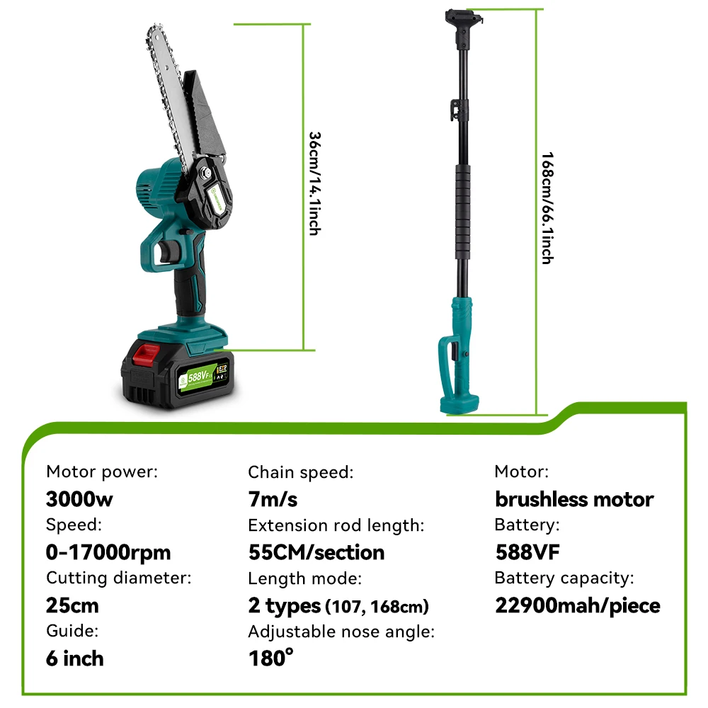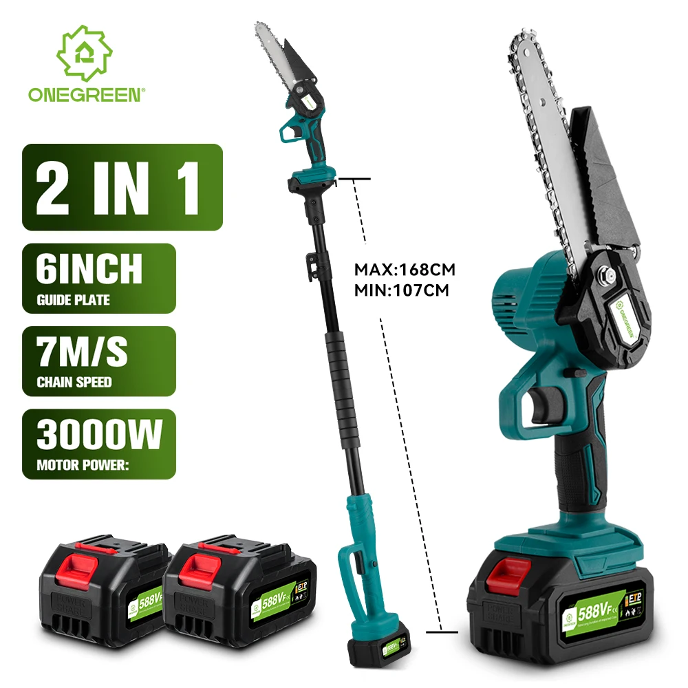 ONEGREEN 3000W 6 Inch Telescoping Pole Electric Chainsaw 2 IN 1 High Branch Garden Pruning Power Tool For Makita 18V Battery