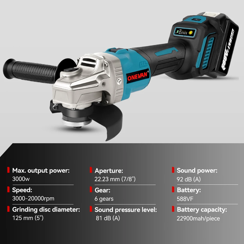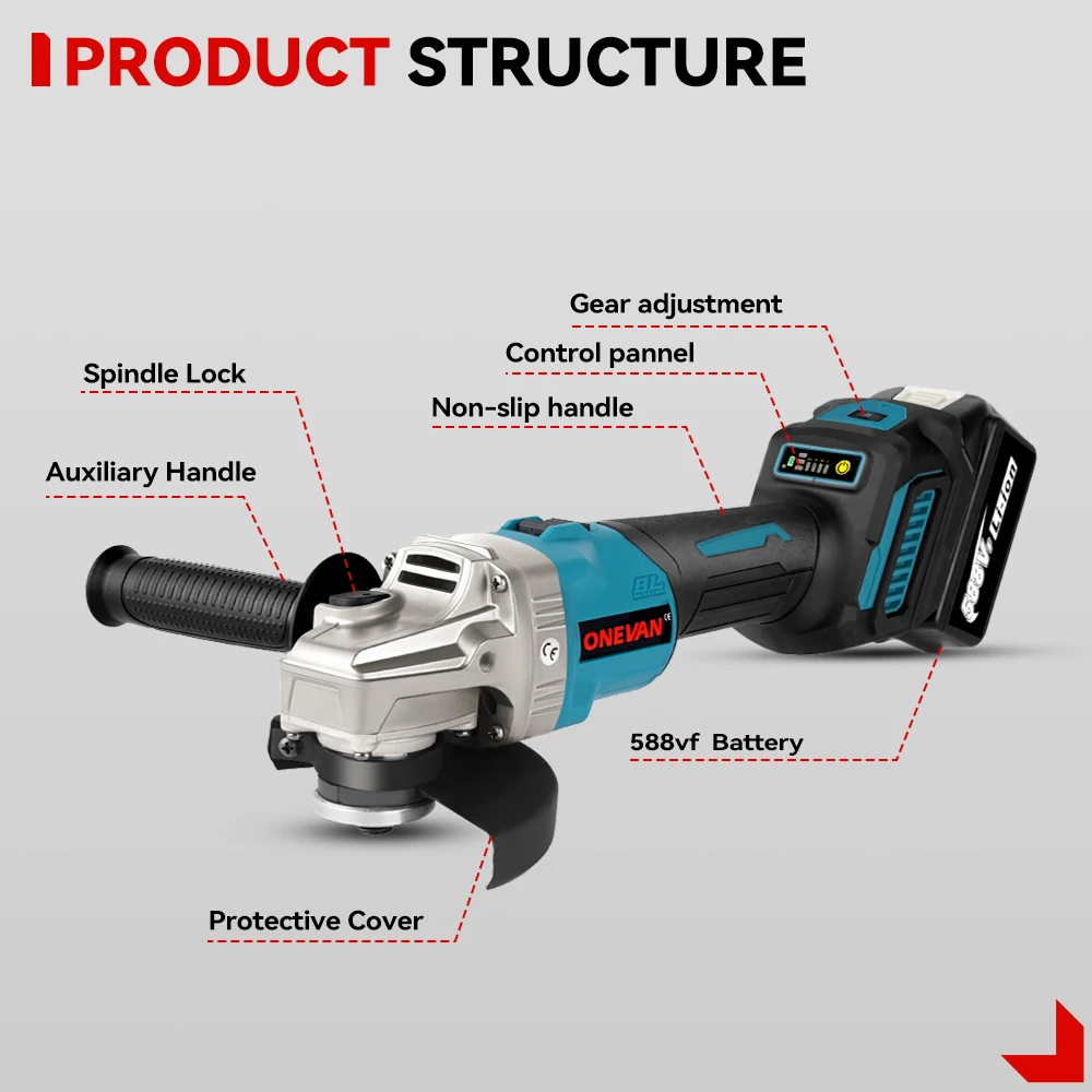 ONEVAN 6Gears Brushless Electric Angle Grinder 125MM Rechargeable Angle Grinder Polishing Power Tools For Makita 18V Battery