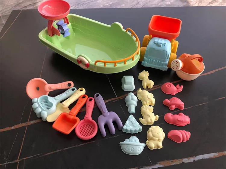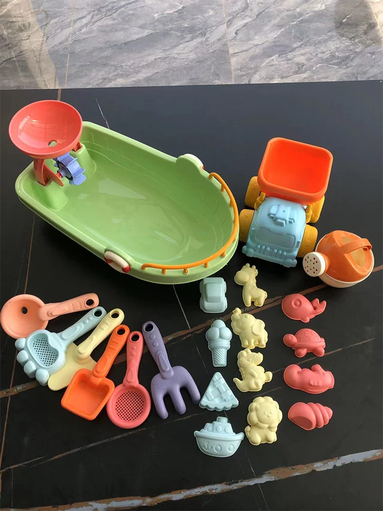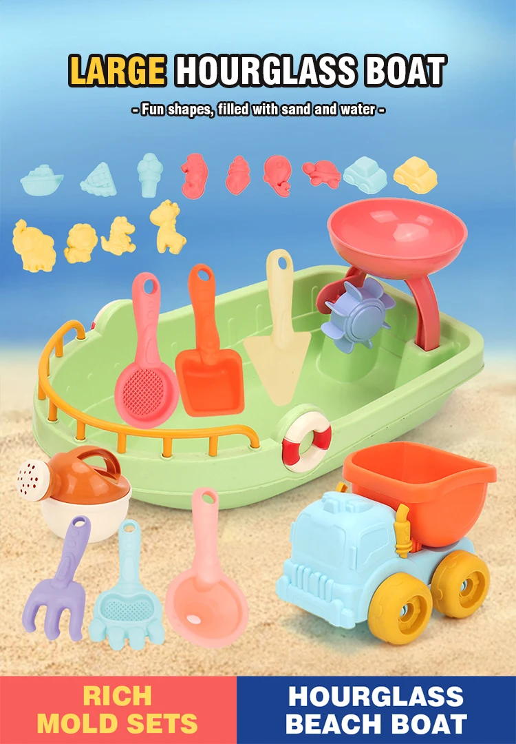 1.Engaged into world of imaginative sand play with the Sand play toy set, featuring a boat with a sand water wheel for fun.