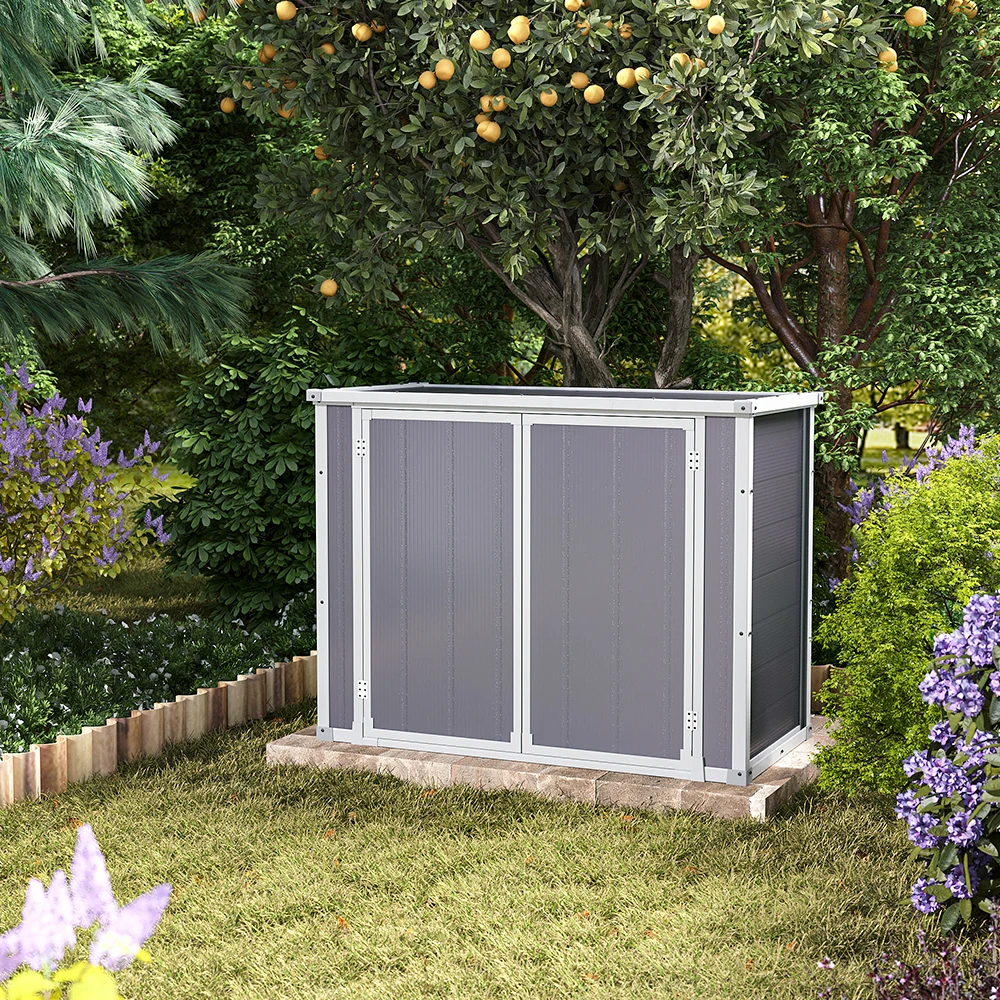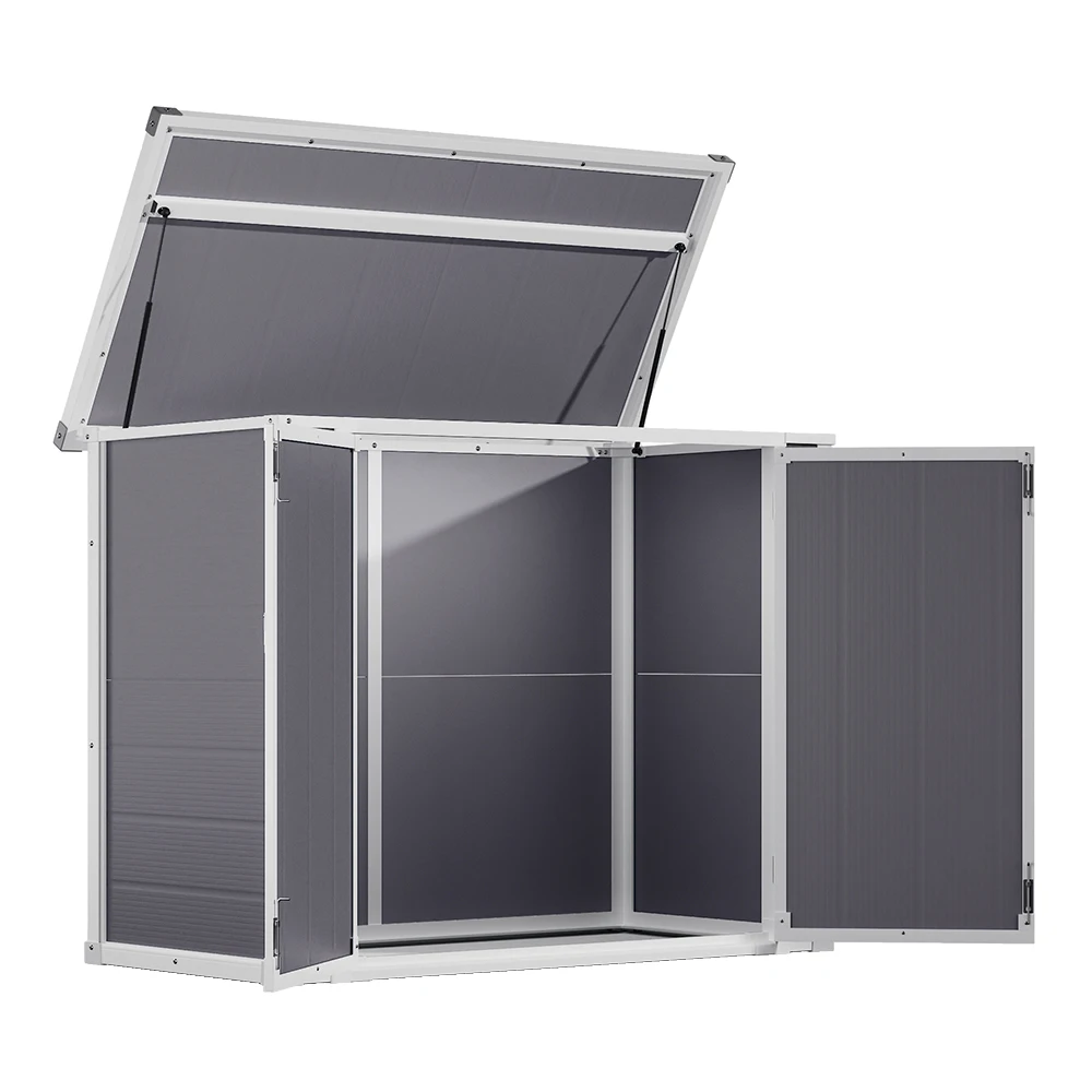 If you have a pool or garden, a storage shed is likely essential for storing tools and other items. This particular storage shed is crafted from high-quality plastic and aluminum alloy, ensuring strength and durability without deformation or corrosion during outdoor use. Featuring two doors and a top that can be opened, it offers a generous entry for your bicycles and large garbage bins. Additionally, it is simple to assemble, adding to its overall ease of use.