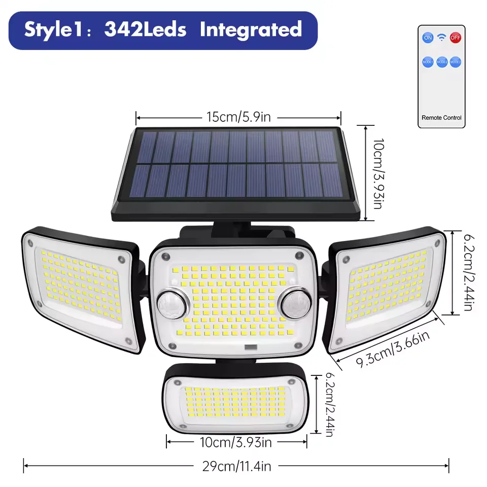 Outdoor Solar Lights 224/342LEDS Dual induction Solar Motion Sensor Lights Solar Wall Lamp With 3 Modes Waterproof Flood Lights
