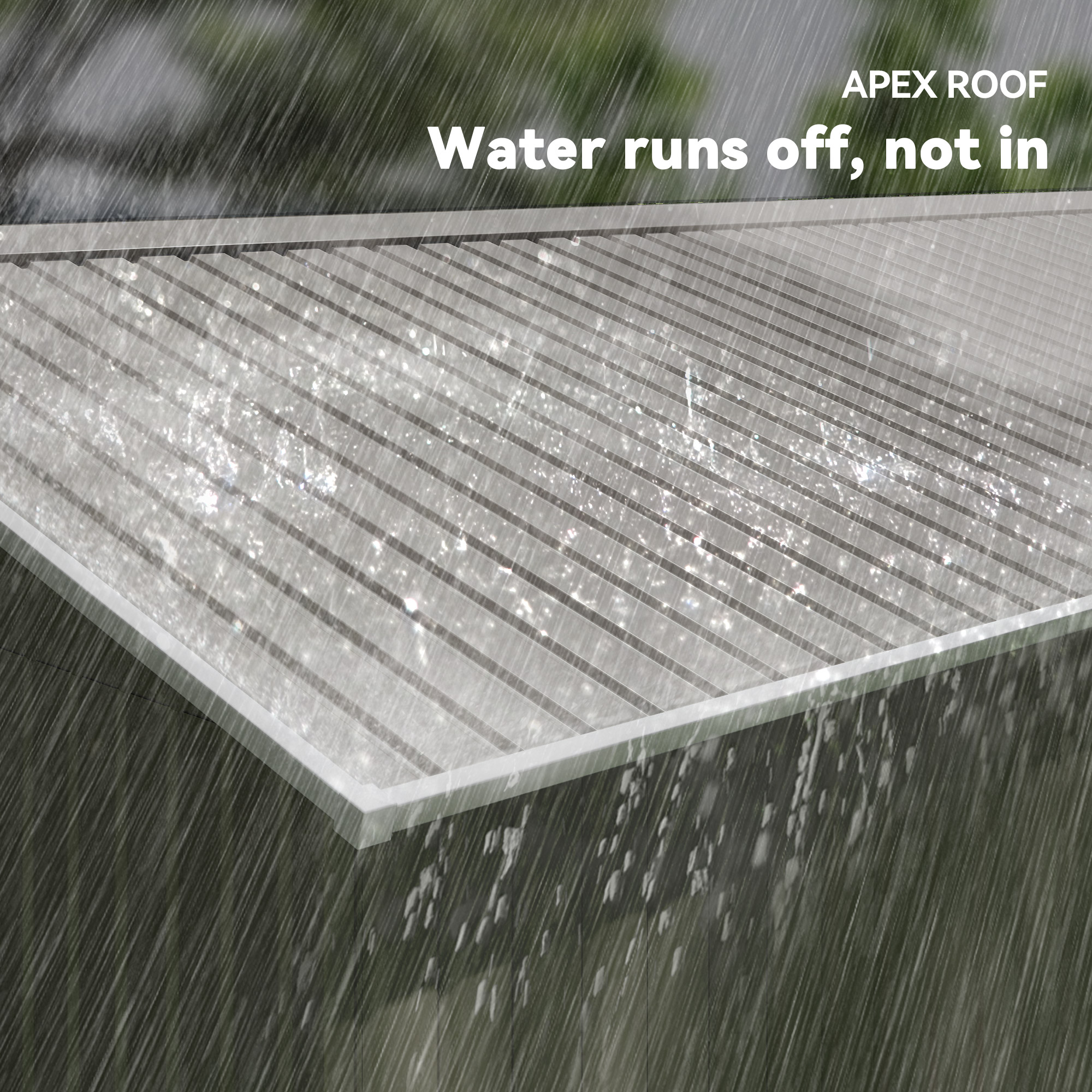 ● Sloped roof helps prevent water build-up: prevents surface damage and rusting