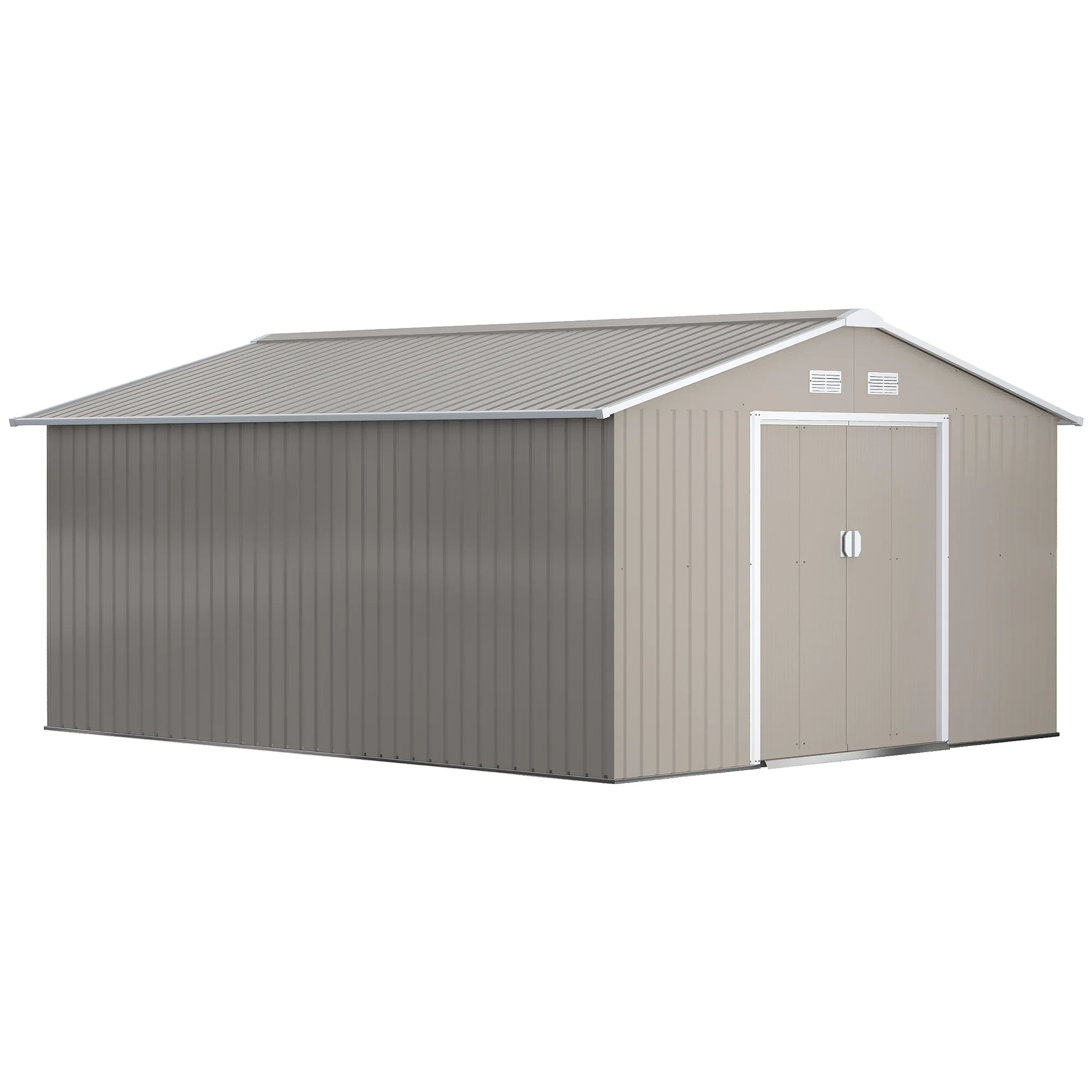 Keep your garden equipment and outdoor essentials locked away securely with this metal shed from Outsunny. Built from galvanised steel for strength, it comes with a lockable double sliding door on the front for easy access and four vents for air to circulate and prevent moisture buildup. The garden tool shed is finished with a protective weather coating and a foundation kit for it to stand level on the ground.