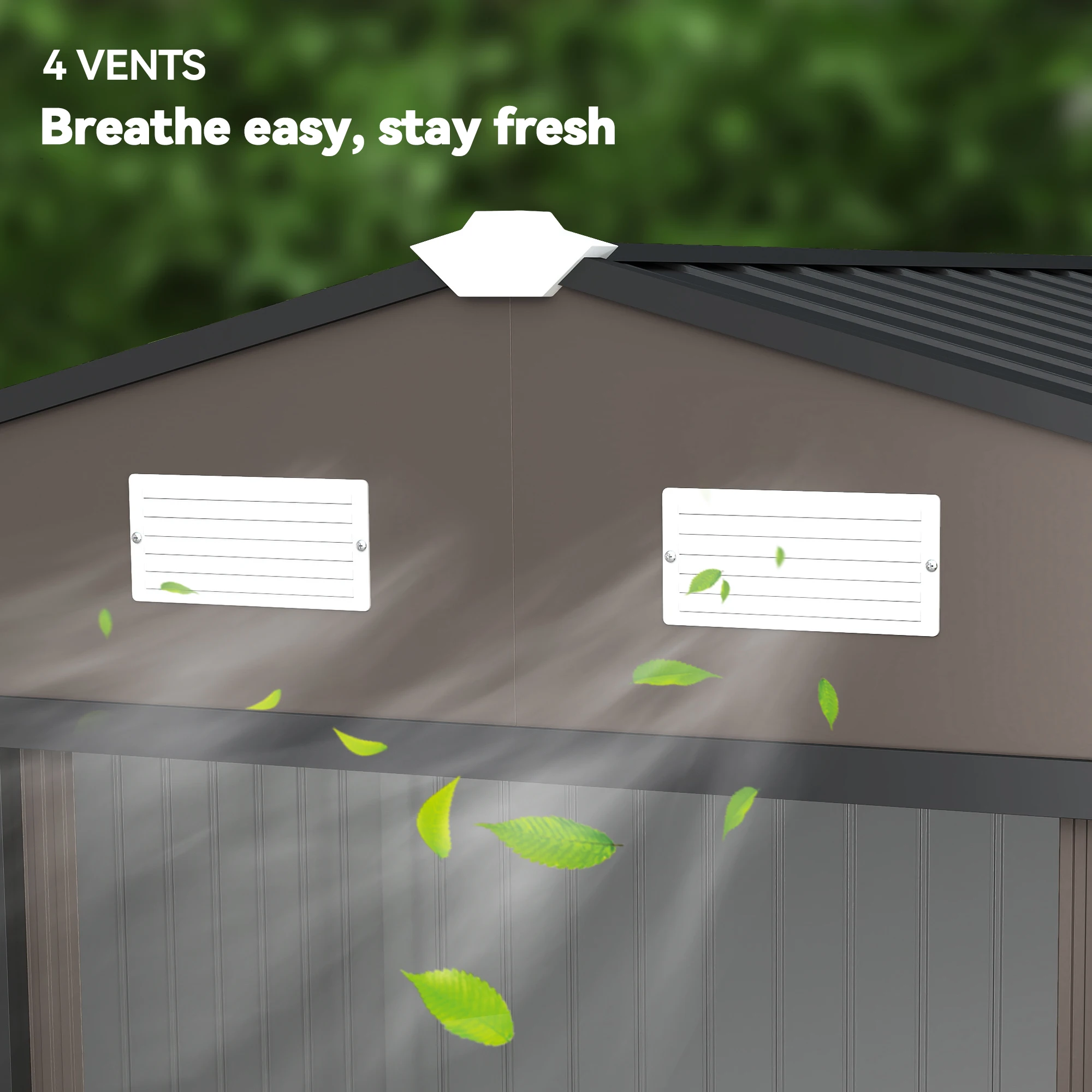 Keep your garden equipment and outdoor essentials locked away securely with this metal shed from Outsunny. Built from galvanised steel for strength, it comes with a lockable double sliding door on the front for easy access and four vents for air to circulate and prevent moisture buildup. The garden tool shed is finished with a protective weather coating and a foundation kit for it to stand level on the ground.