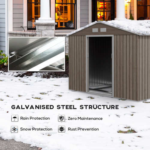 Outsunny 9 x 6ft Steel Garden Shed, Outdoor Storage Tool House with Vents, Foundation and Lockable Double Doors, Brown