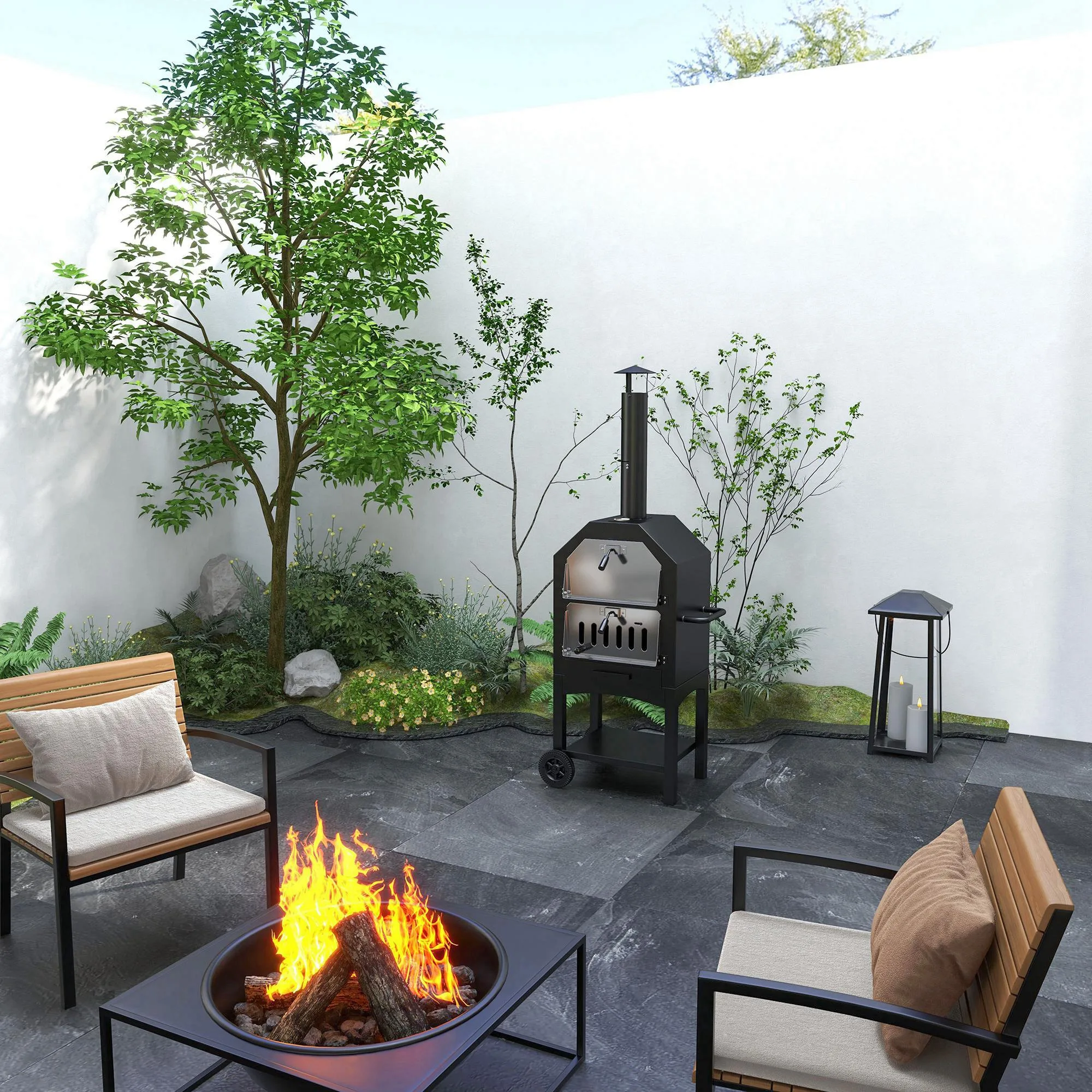 Create and cook restaurant-quality pizza in the comfort of your own home, thanks to this oven from Outsunny. With two-tiers to allow you to cook food quickly and effectively, it is made into an easy-use design, where a thermometer on the top keeps you aware the heat level to avoid burning, along with a tall chimney which safely extracts the smoke upwards to protect you and others around. A great excuse for getting everyone over once the sun comes out to shine.