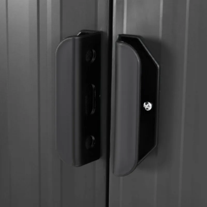 • Air vents: Two top front slots to keep metal shed inner as fresh as possible, helping to reduce mould and mildew build-up. Sloped roof to prevent rainwater build-up.