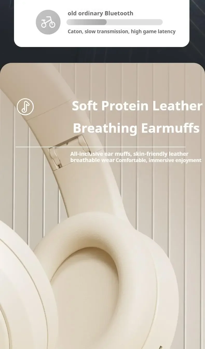 5. Lightweight design, wrapped in soft protein leather on the inner side of the headrest, paired with skin friendly breathable earmuffs, comfortable to listen to all day long.