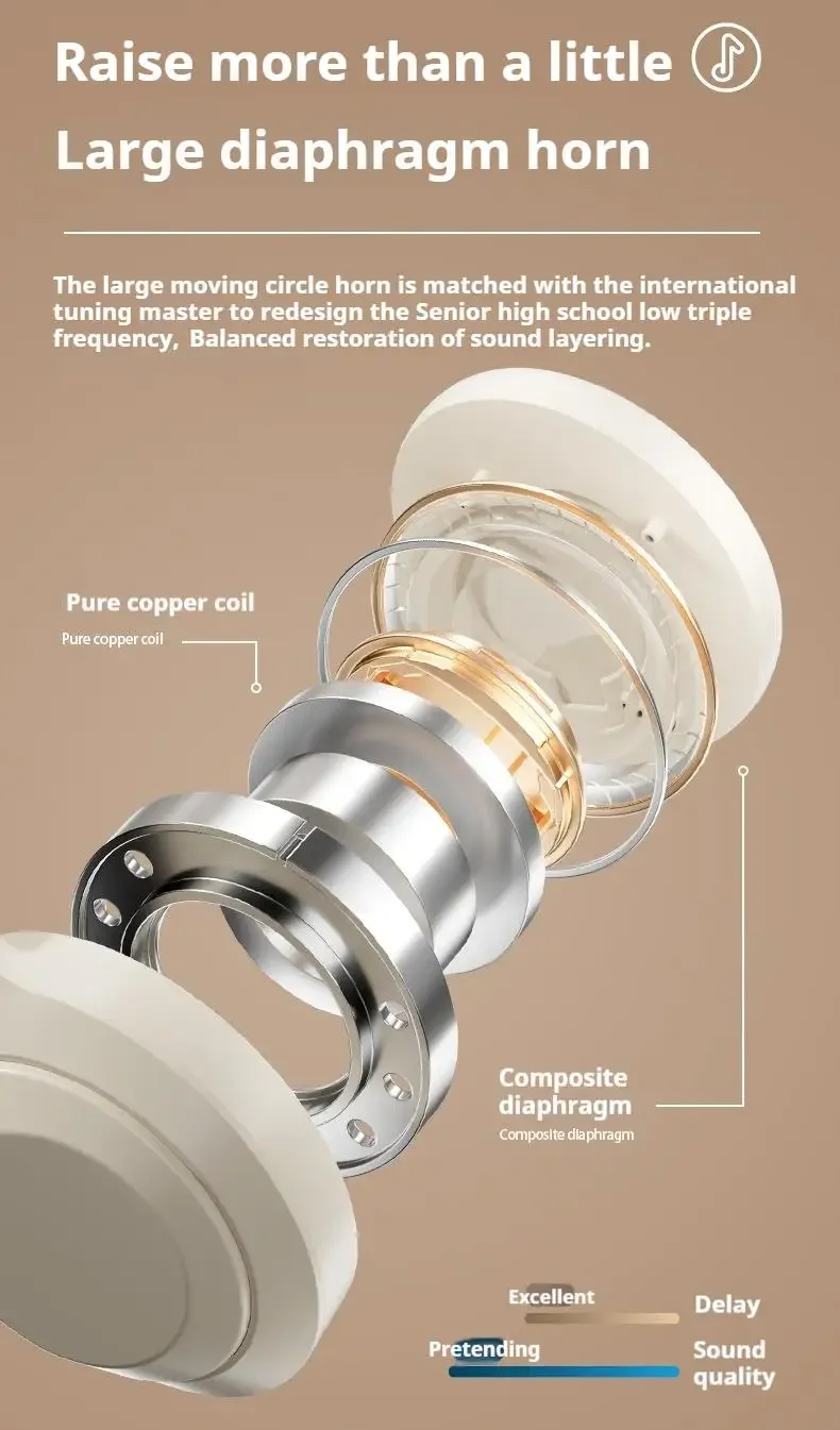 3.40MM dynamic unit, with its powerful performance, restores delicate audio details, with rich bass and clear treble, providing a live music experience.