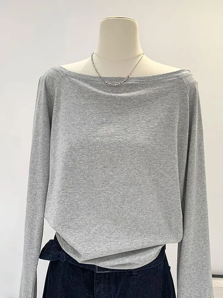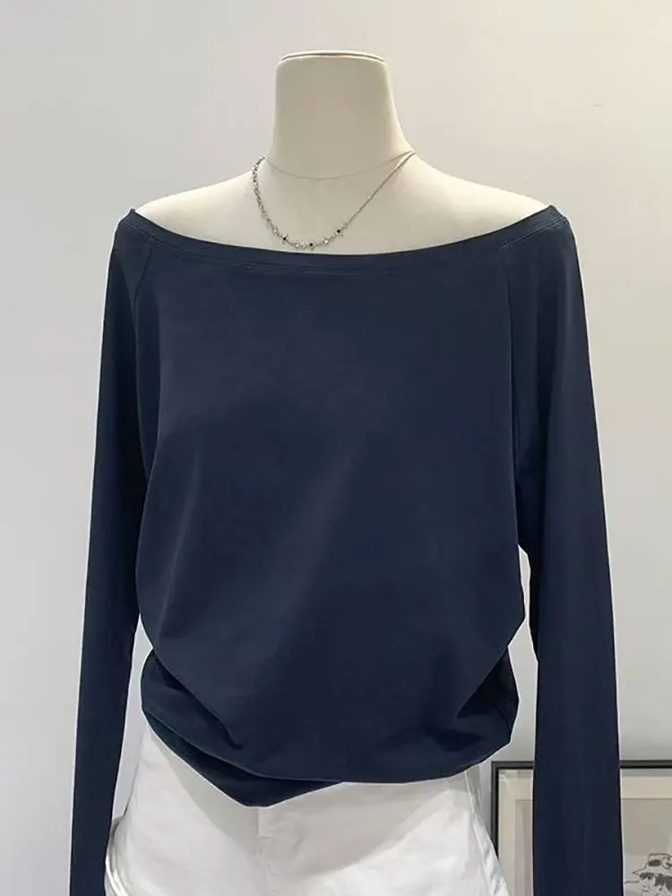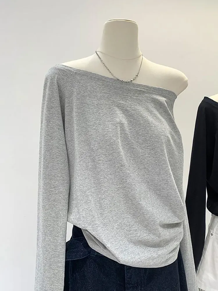 Oversize Off shoulder Long sleeve T shirt Women Solid color Casual Tops Lady Spring Autumn Basic Tees Korean style Youth Blouses
