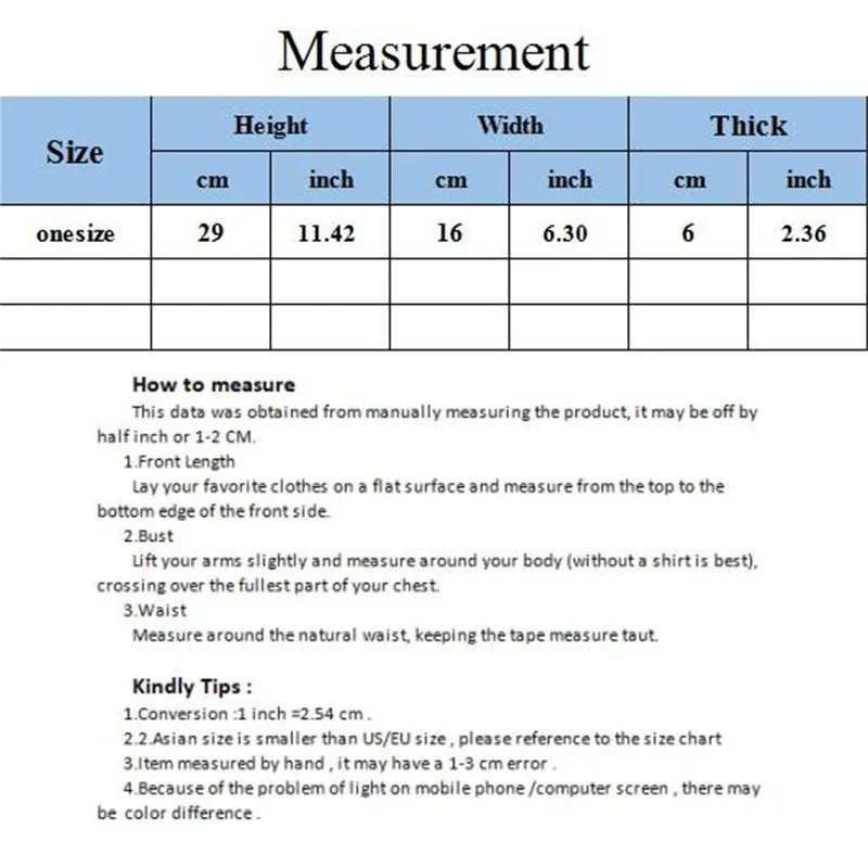 2.Item Measure by hand, it could be 1cm different,your kind understanding will be much appreciated.