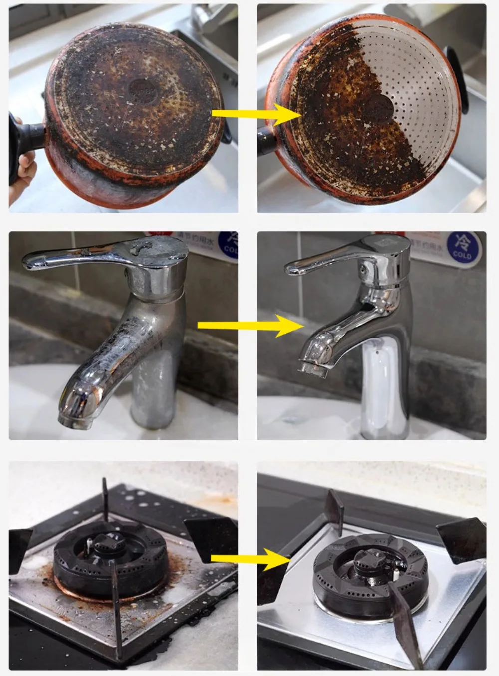 5、Wide Range of Applications: The Black scale Remover can be used for stainless steel pots and pans, metal products, automotive products, interior walls, and so on.