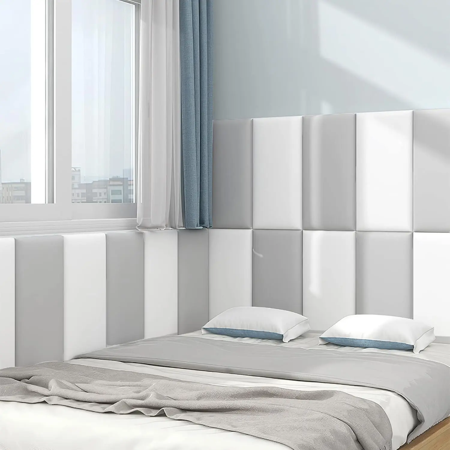 Peel & Stick 3D Upholstered Wall Panels – 5PCS Anti-Collision Padding for Queen Headboard Playroom Decor