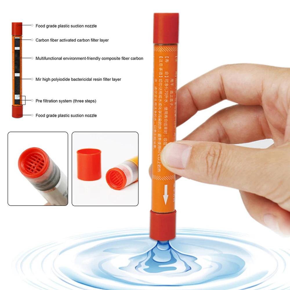 Pen Shaped Portable Personal Camping Equipment Water Filter Safety Pocket Water Purifier Purification Straw for Hiking Outdoor Emergency Survival Gear Tools