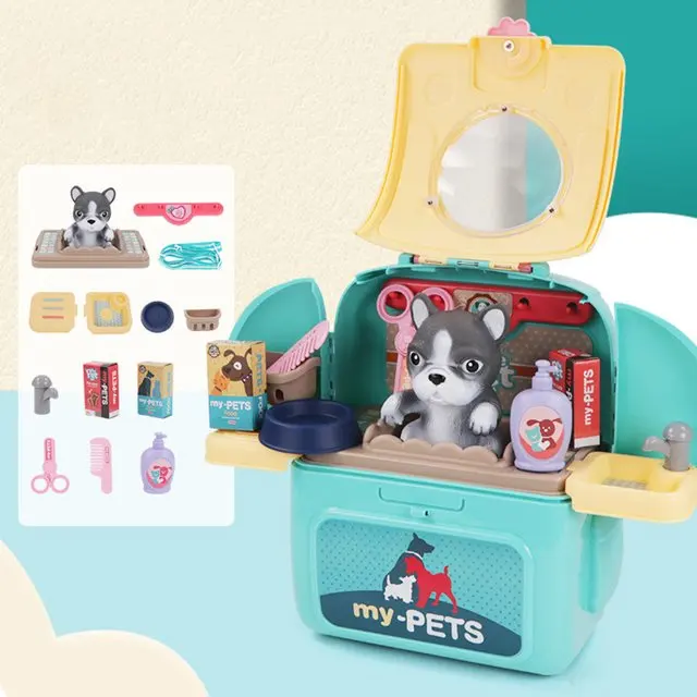 Pet Care Play Set Dog Grooming Kit with Backpack Doctor Set Vet Kit Educational Toy Pretend Play for Toddlers Kids Children