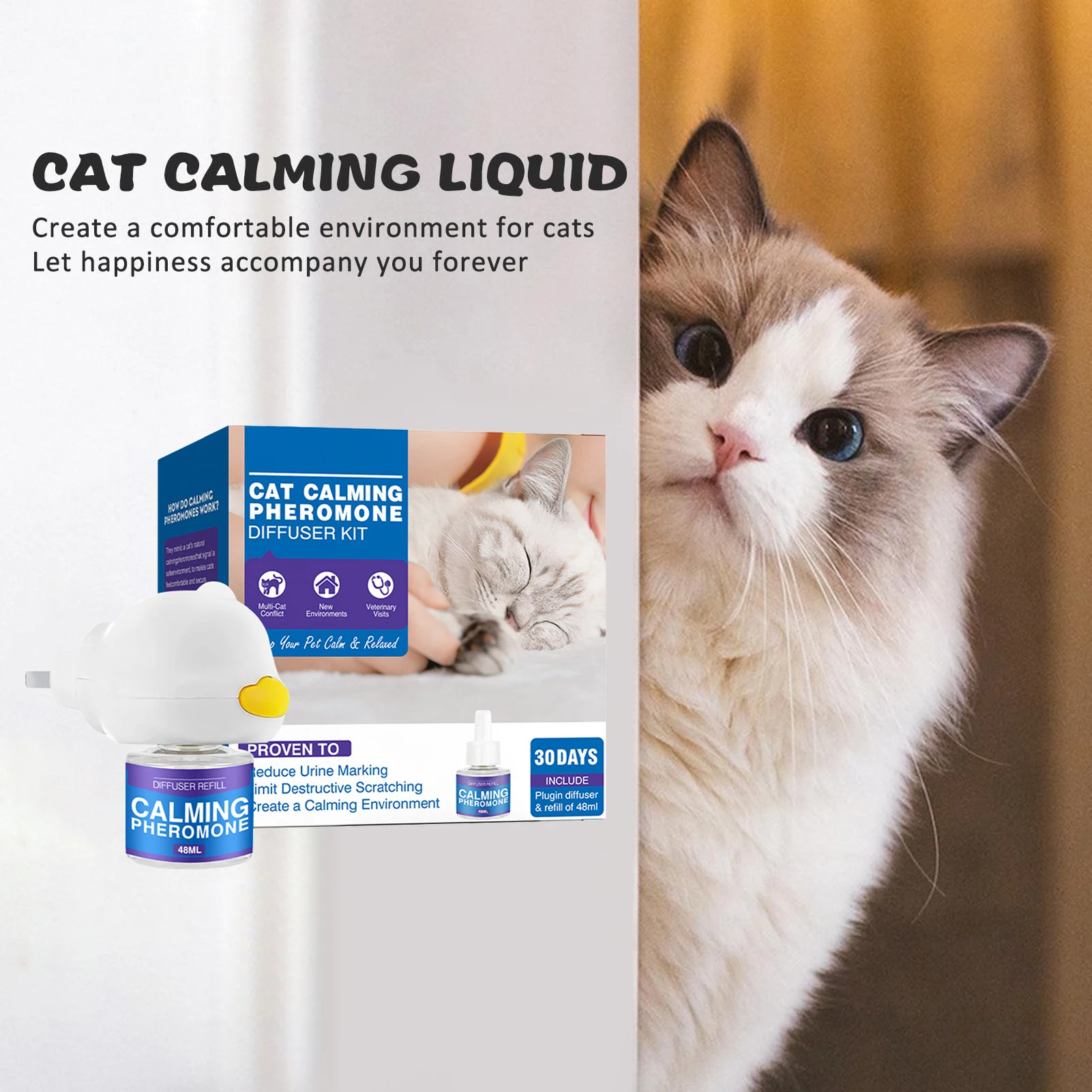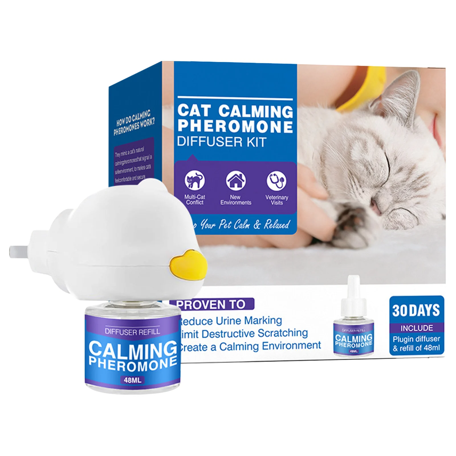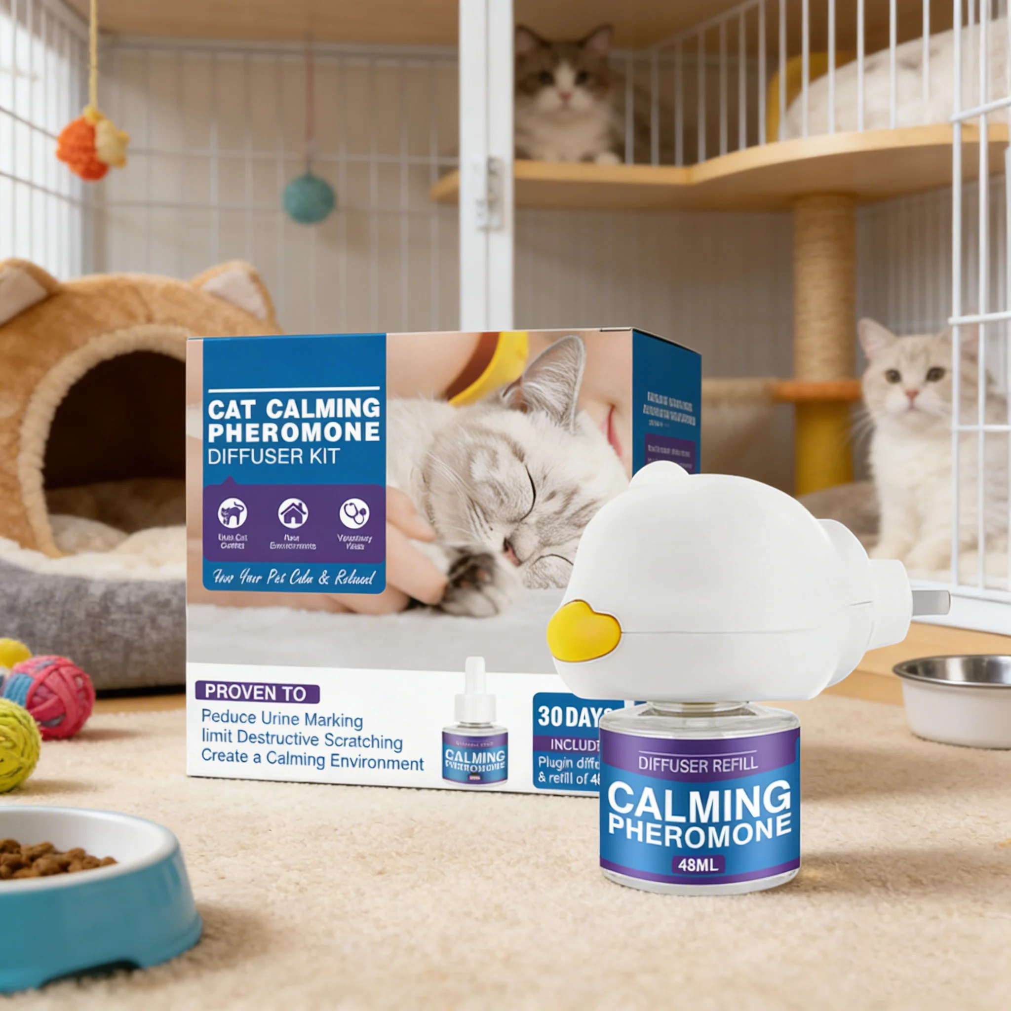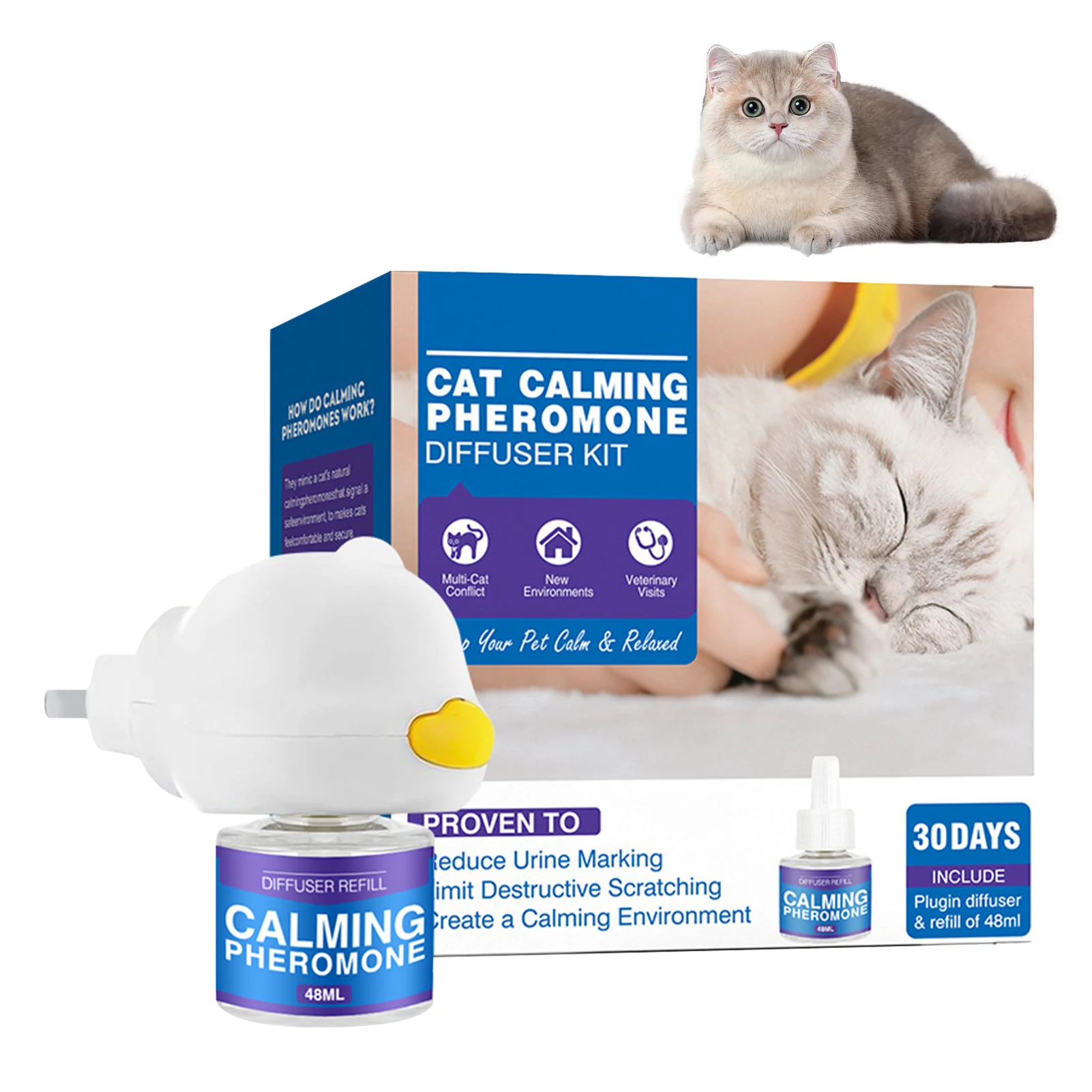 Promotes: Our cat calming diffuser helps reduce cat fighting and spraying by creating a peaceful atmosphere that encourages positive behavior and reduces stress.
