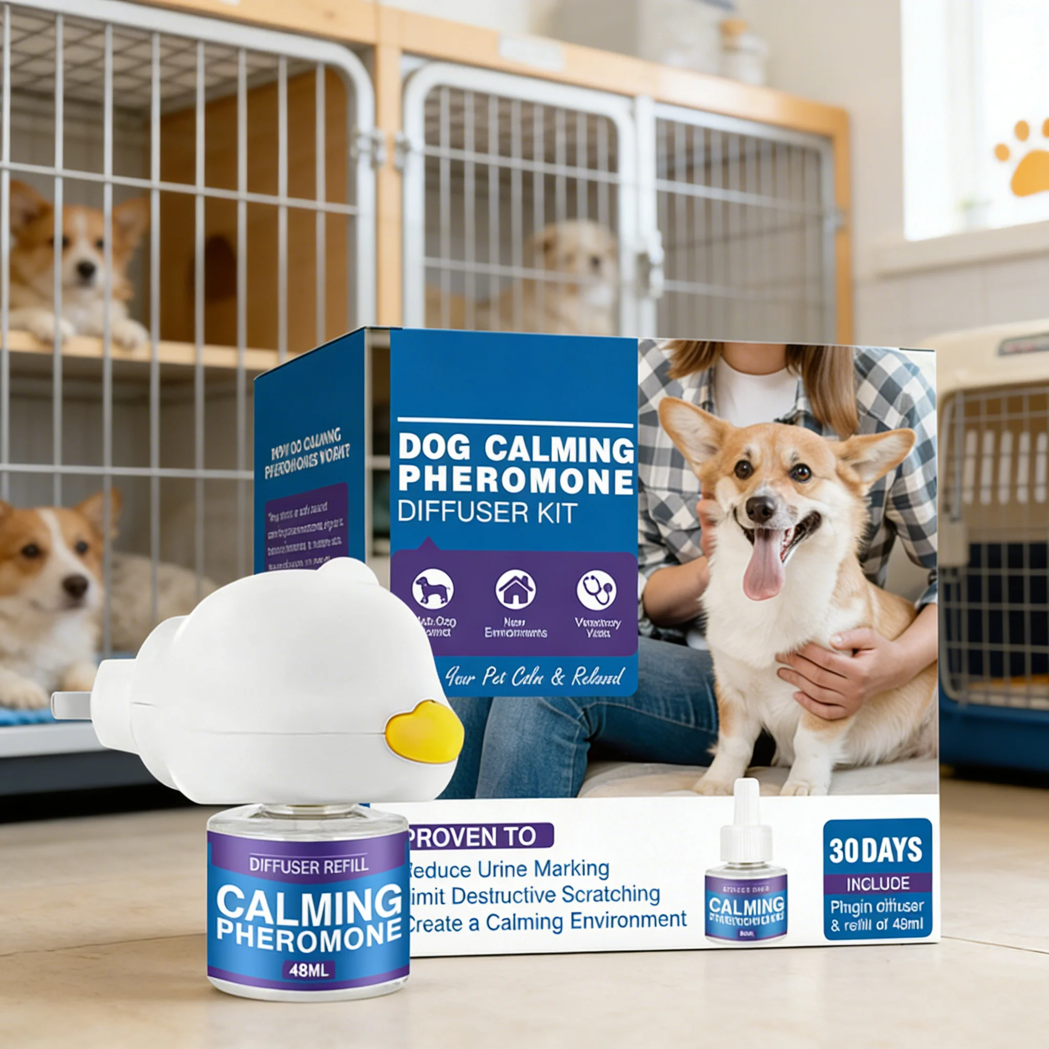 Safe and Convenient: This 48ml cat/dog calming diffuser is safe for use around pets and is easy to use, simply plug in to create a calming environment for your furry friend.