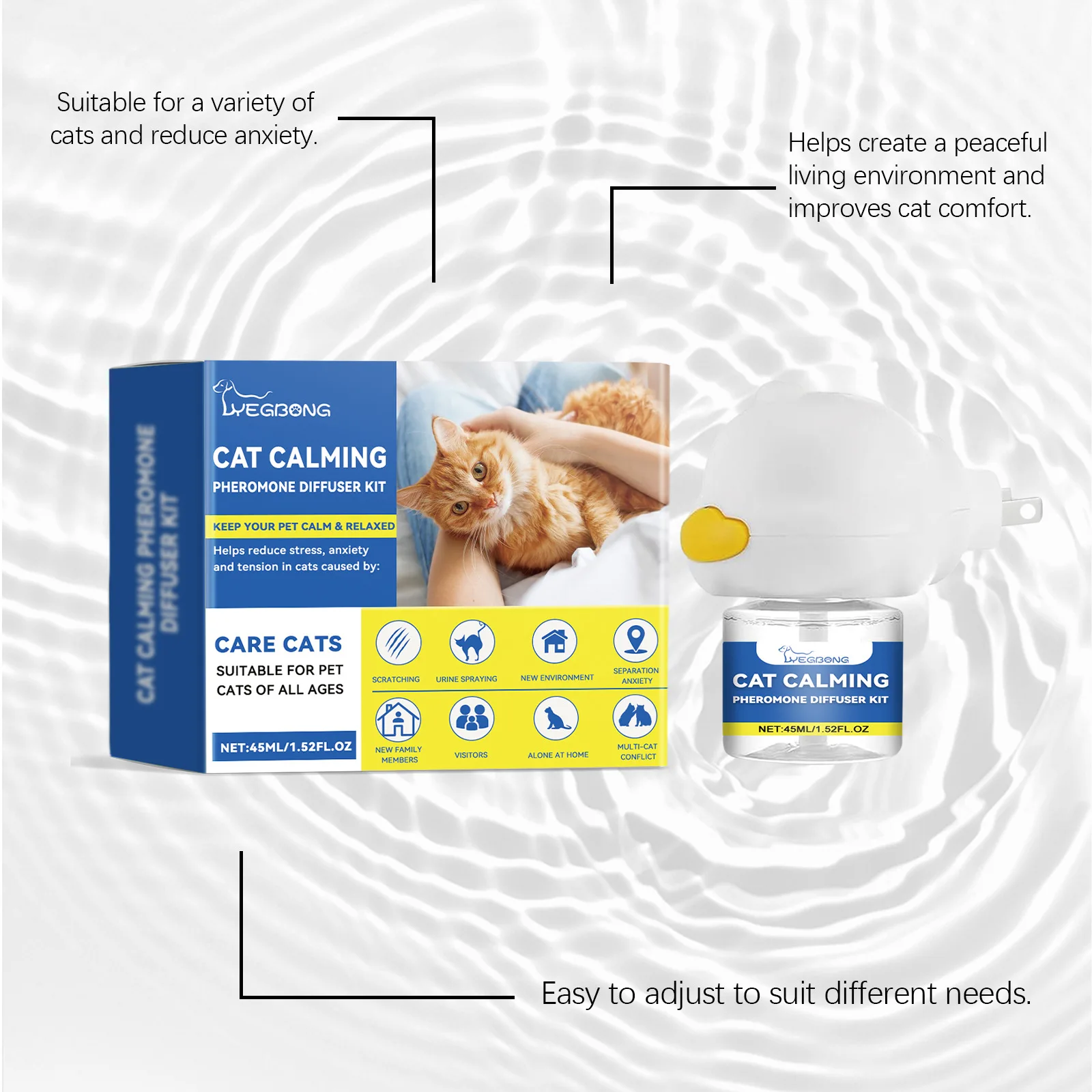 1. Pet Pheromones Calming Diffuser helps pets adapt to new environments and new friends, reduce pets’ stress when going out, soothe pets’ uneasy emotions, and effectively prevent stress reactions.