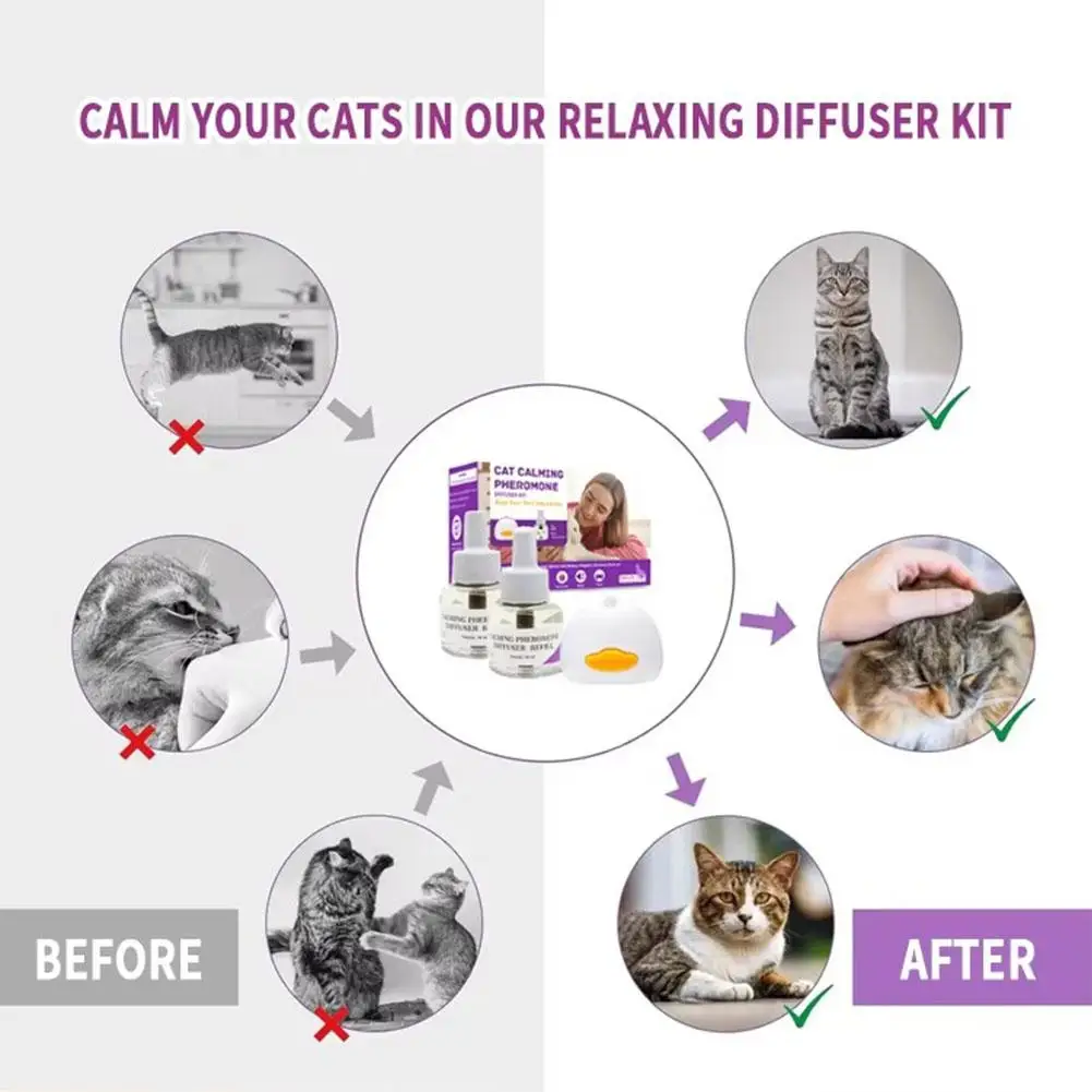 3.Our cat pheromone diffuser effectively reduces stress-related scratching, marking and aggressive behaviors, allowing you to positively change your cat’s behavior