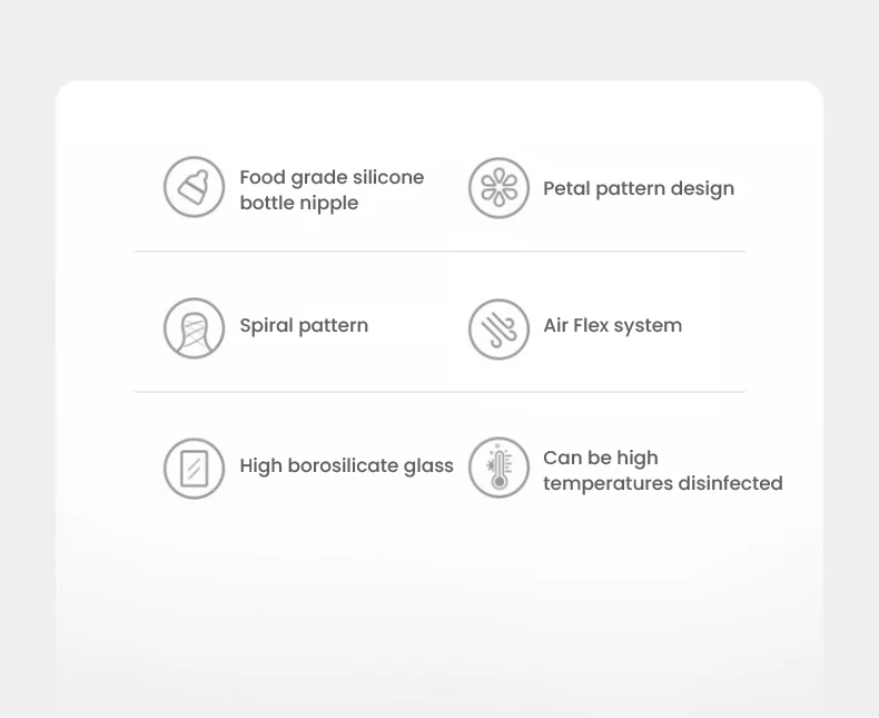 1. Full food grade silicone bottle nipple without bisphenol A (BPA) and can withstand high temperatures of 110 ℃,
