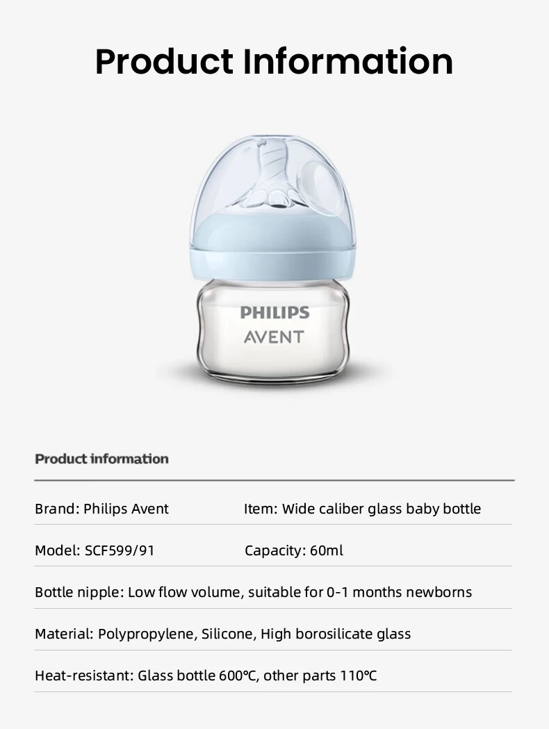 Philips Avent SCF599/91 Glass Baby Bottle with Wide Caliber