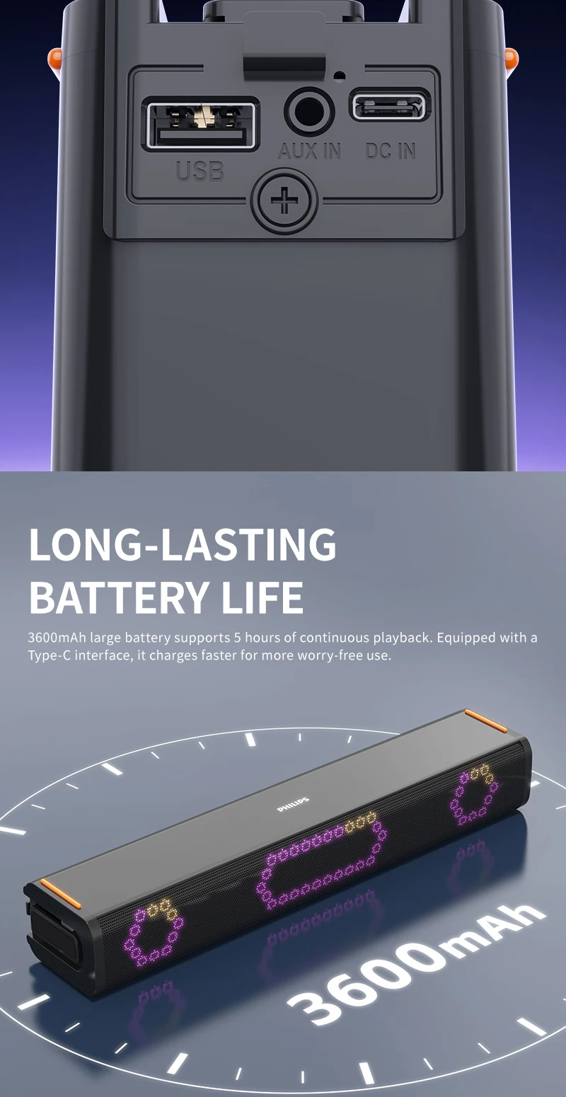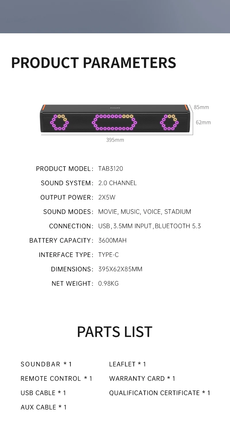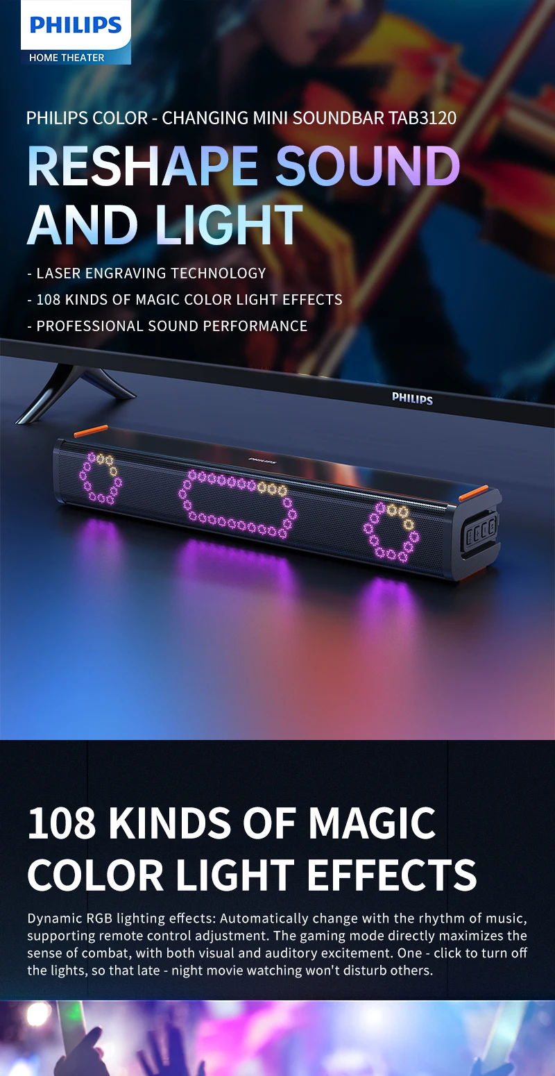 PHILIPS TAB3120/93 Soundbar Smart Remote Control dual-mode connection wired/Bluetooth 3600mah battery with light spectrum effect