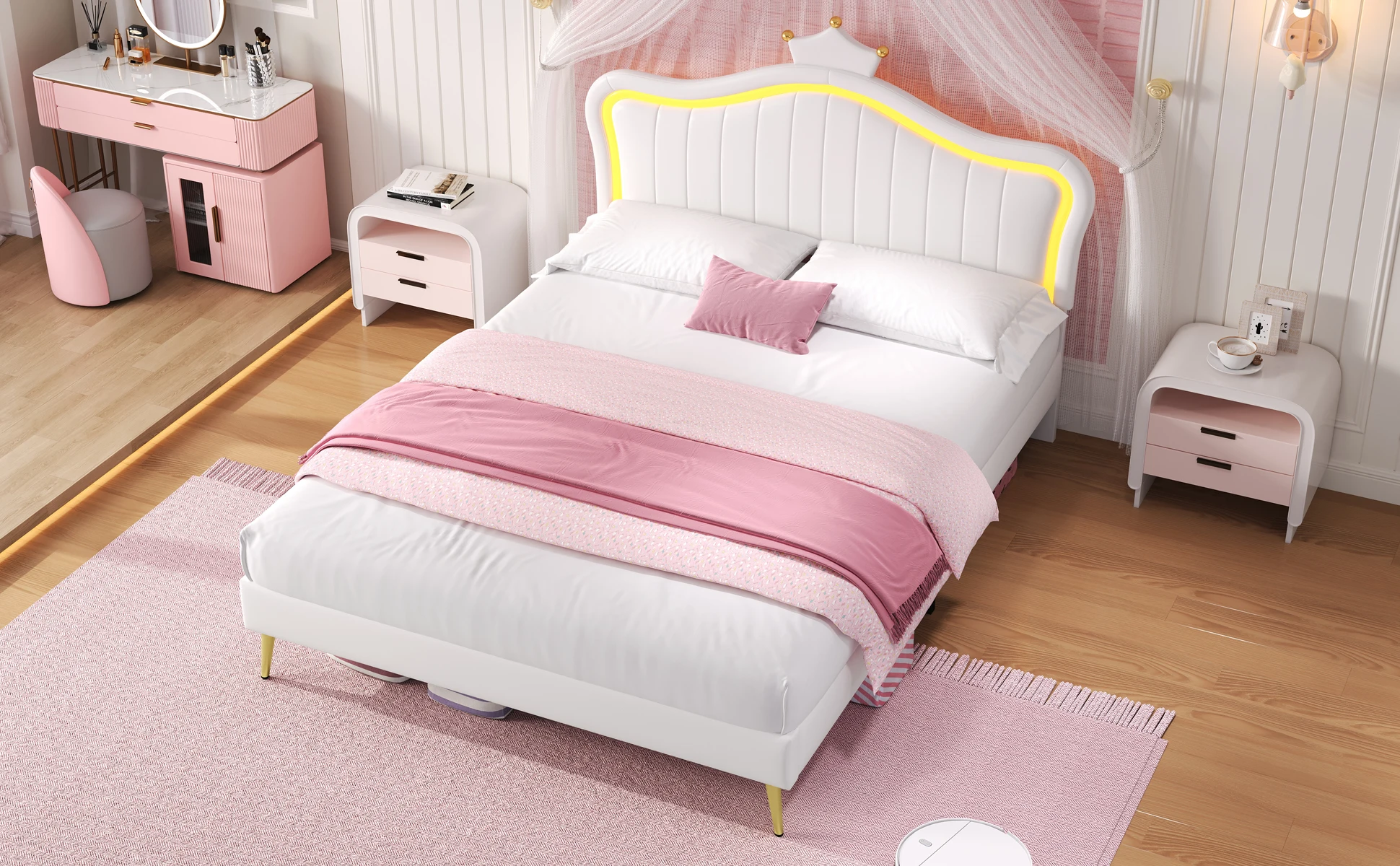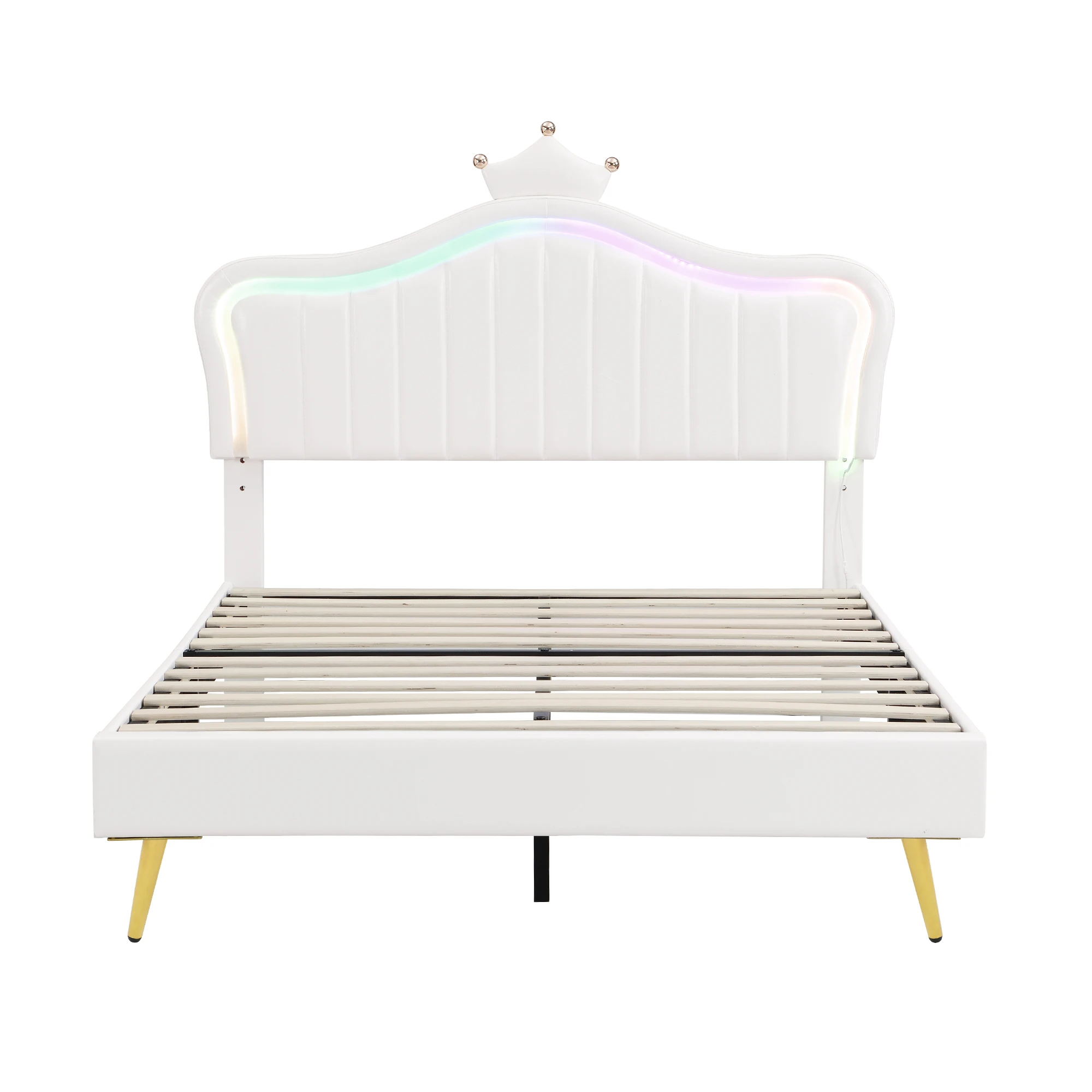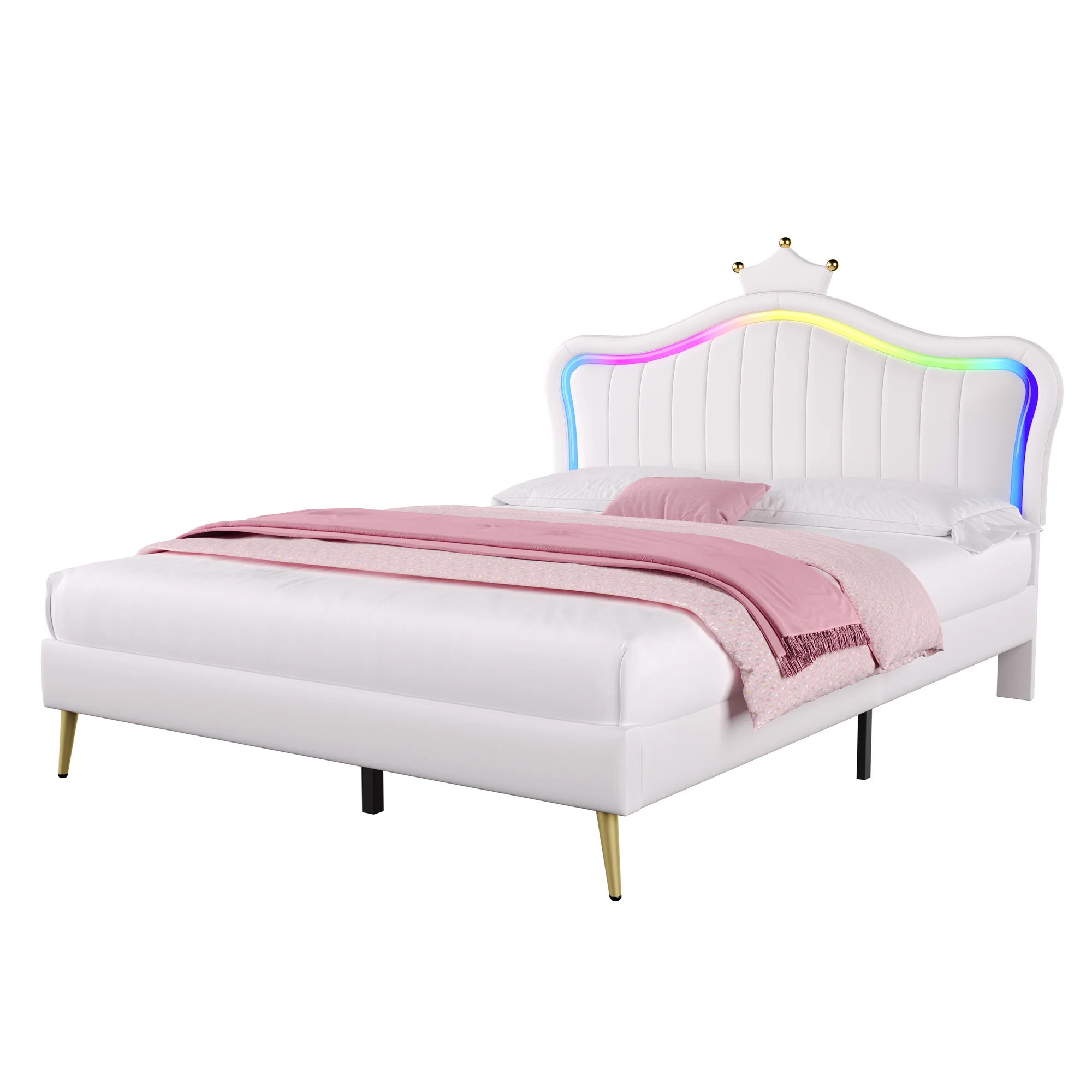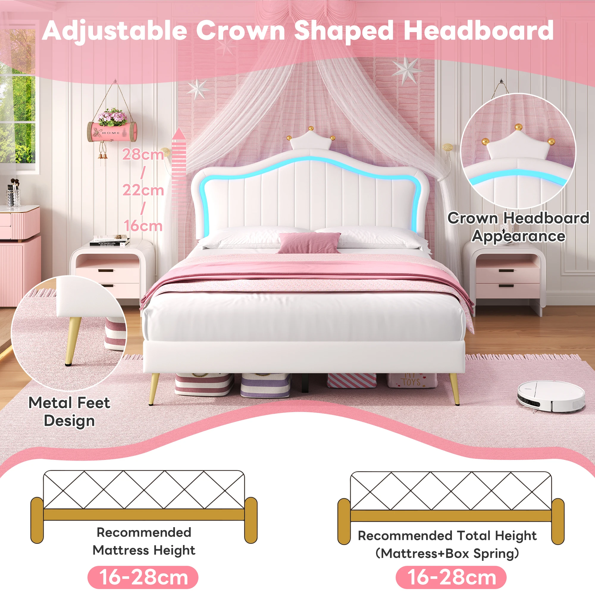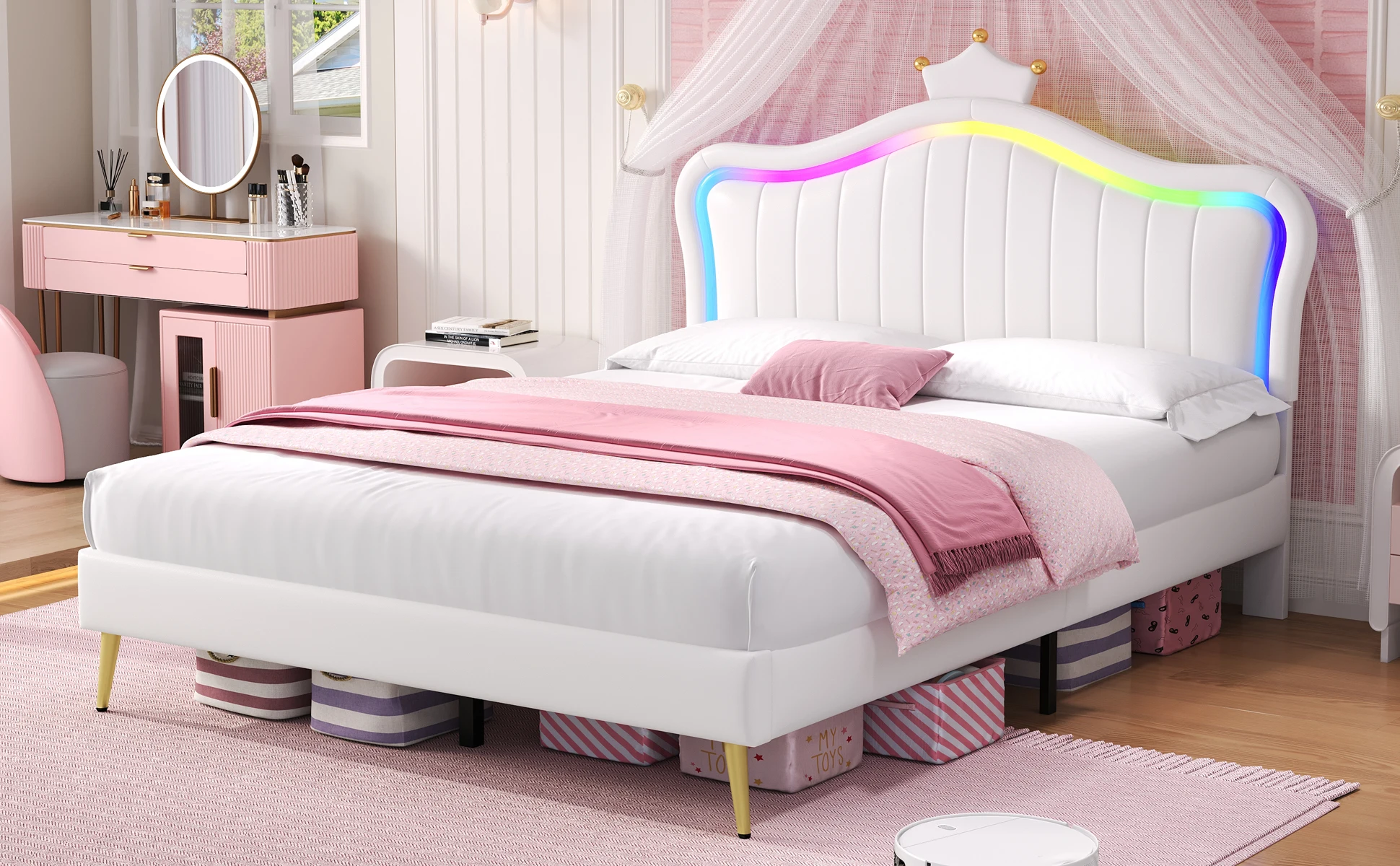 RGB LED lighting strip & Adjustable crown headboard & Bottom space clearance & Metal feet design |