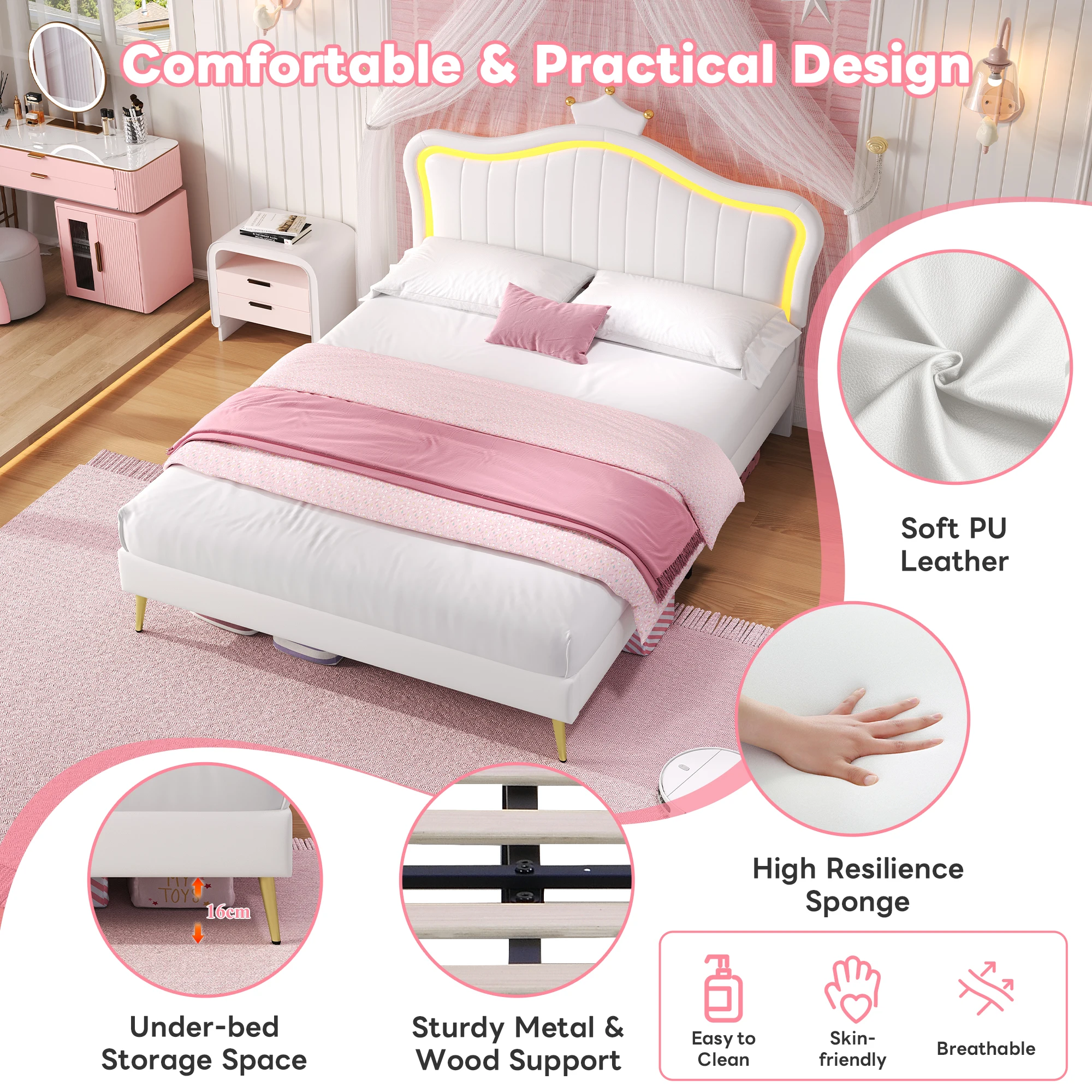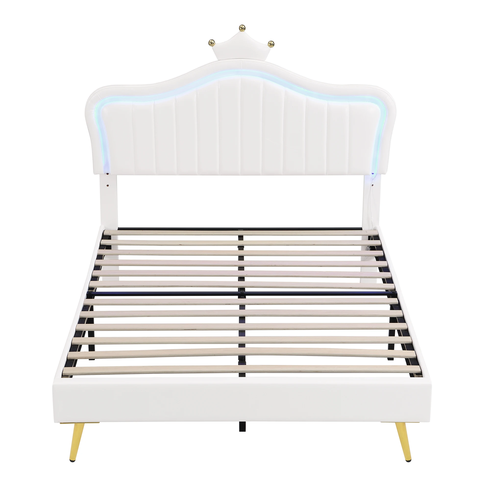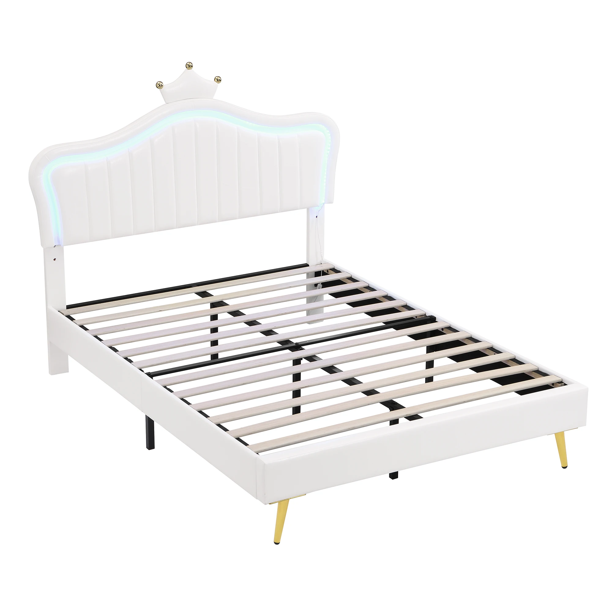 [Eye-catching Design] With the design of chic LED crown shape headboard, this upholstered platform bed brings an artistic and warm atmosphere to your home. Metal feet add to the eye-catching design. Its stylish look with clean lines that blend well with the surroundings.