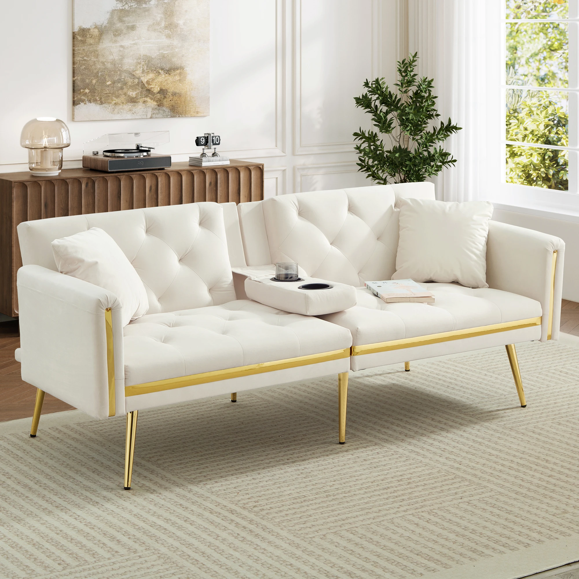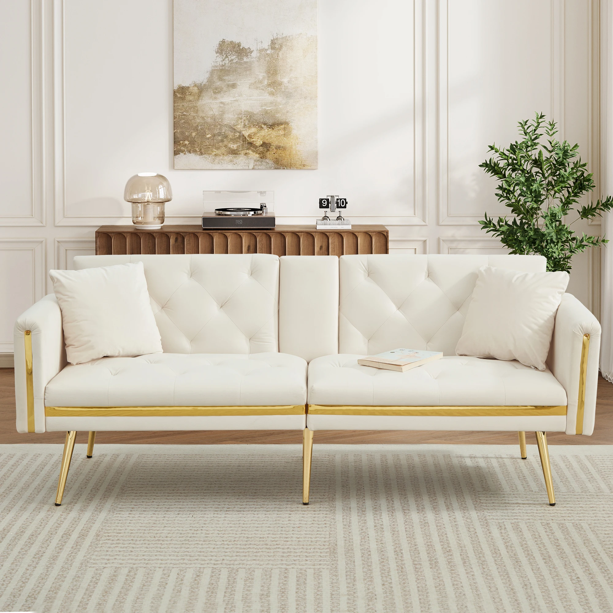 • GOLD TRIM DETAILS: Elegant gold trim on the armrests and seat sides is eye-catching. These gold PVC trim strips enhance the sofa’s appearance and make it a perfect finishing touch to your home decor.