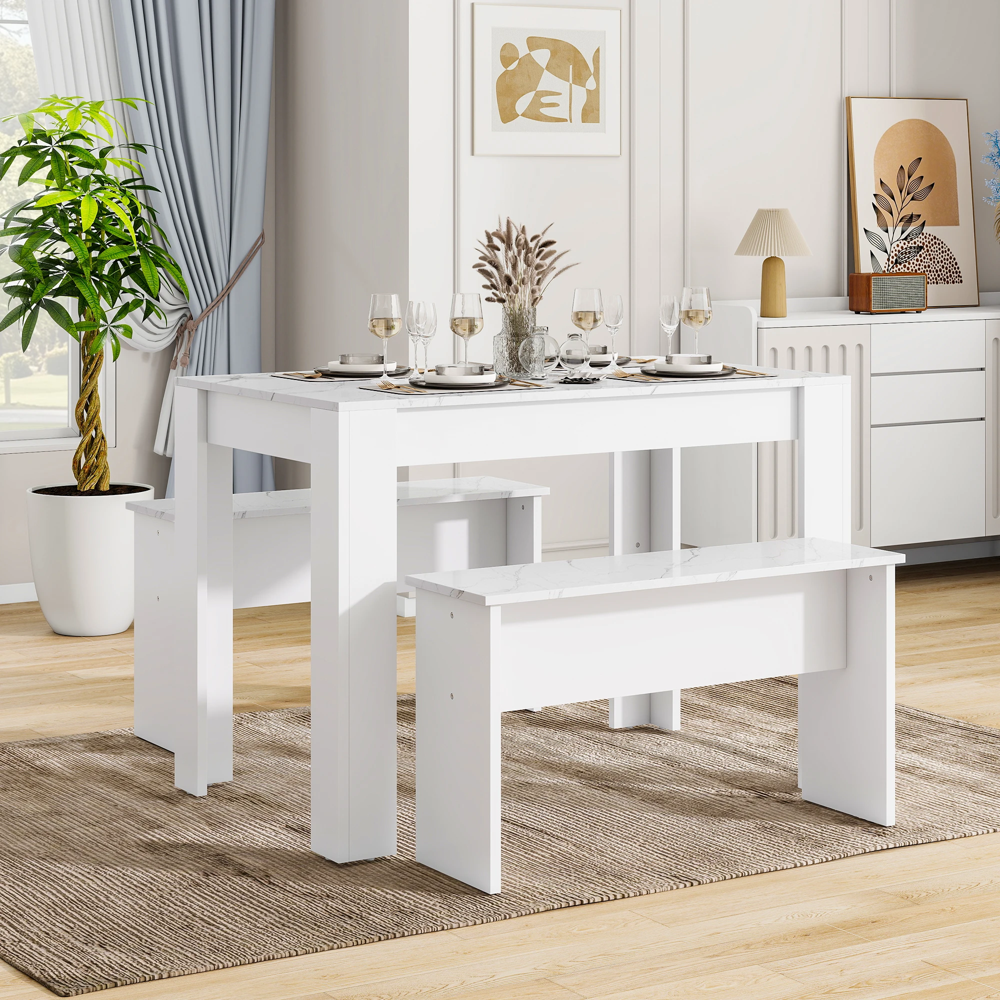 Nice Firmness–You Can Rely on Expertly crafted from premium 1.5cm-thick E1 MDF for superior stability to effortlessly withstand daily use in home. The dining set will become a staple of your home and provide worry-free seating for years to come.