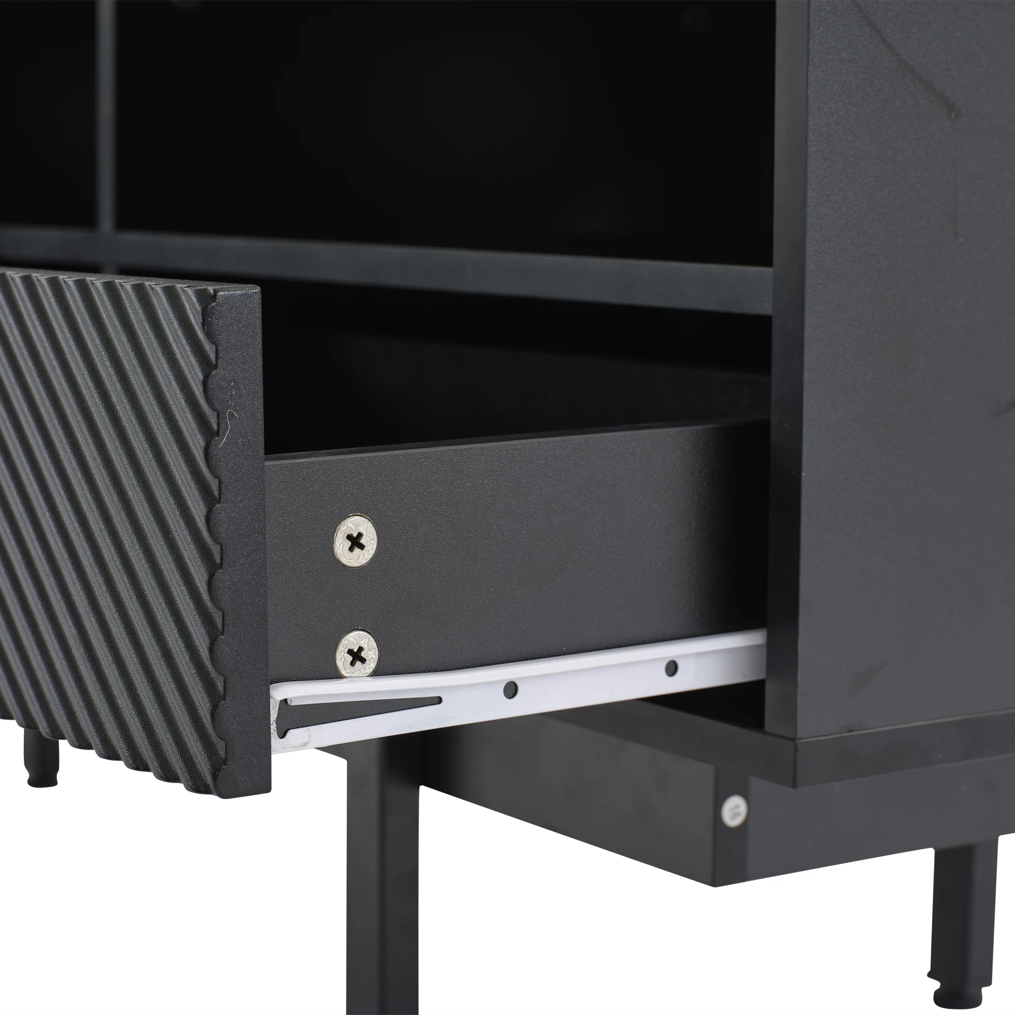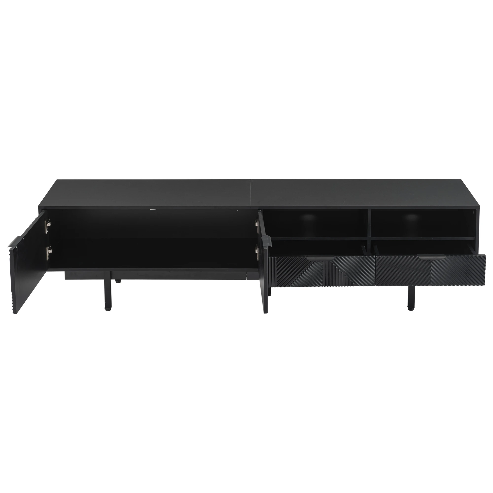 The black minimalist TV stand brings modern mid-century glamour to your bedroom and living room. It can also be combined with other furniture in your home to create the perfect look.