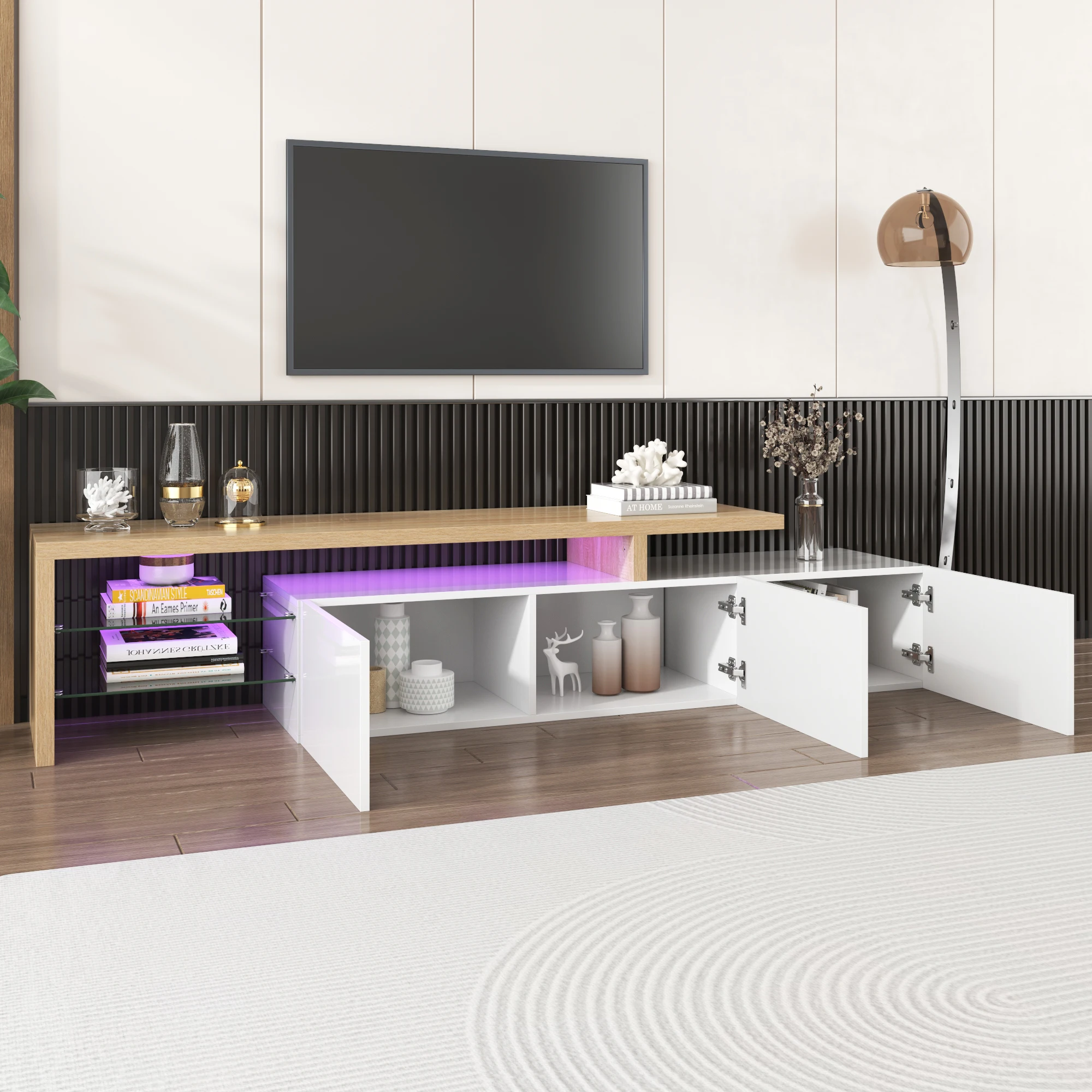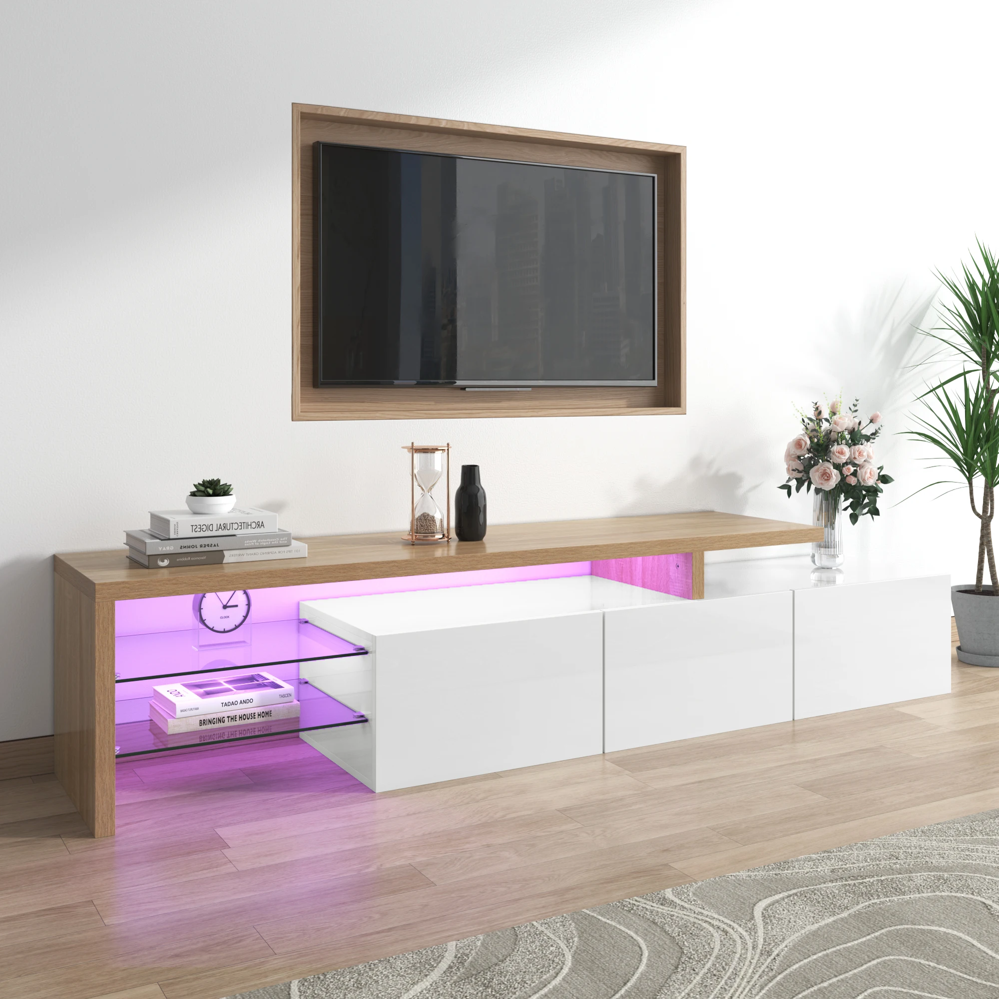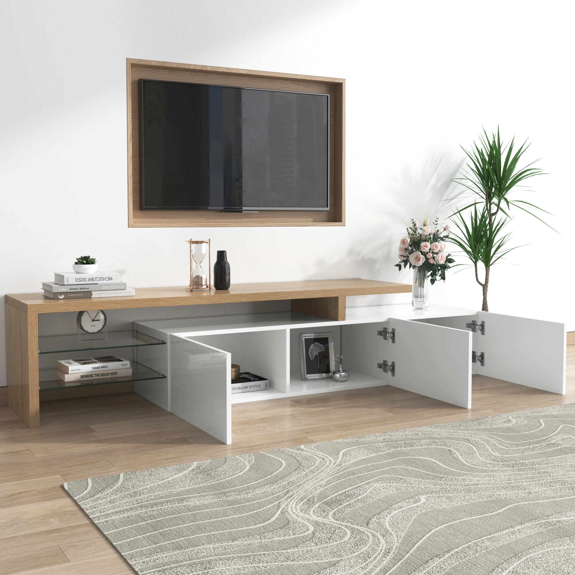 The modern design is impressive, with white and warm wood tones harmoniously combined to add a touch of style to your living room. Smooth surfaces and clean lines provide a modern aesthetic that blends seamlessly into any decor.