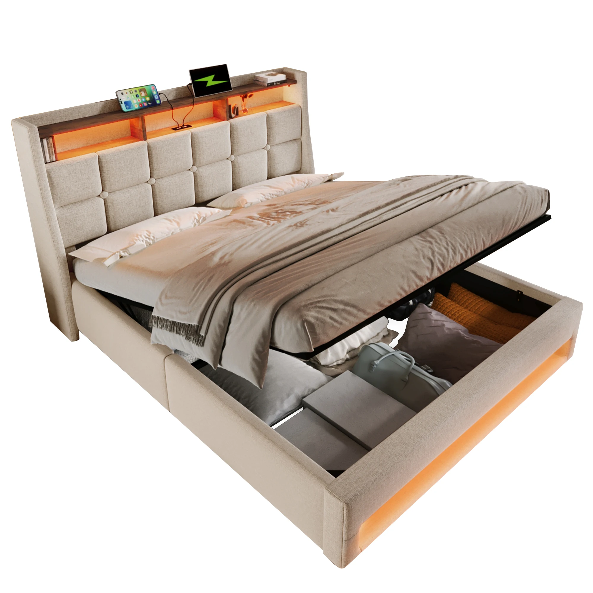 • LED LIGHTING:The LED lighting at the head and foot of the bed adds a modern touch to your bedroom, and the remote control allows you to change the different colors and brightness for a pleasant night’s sleep.