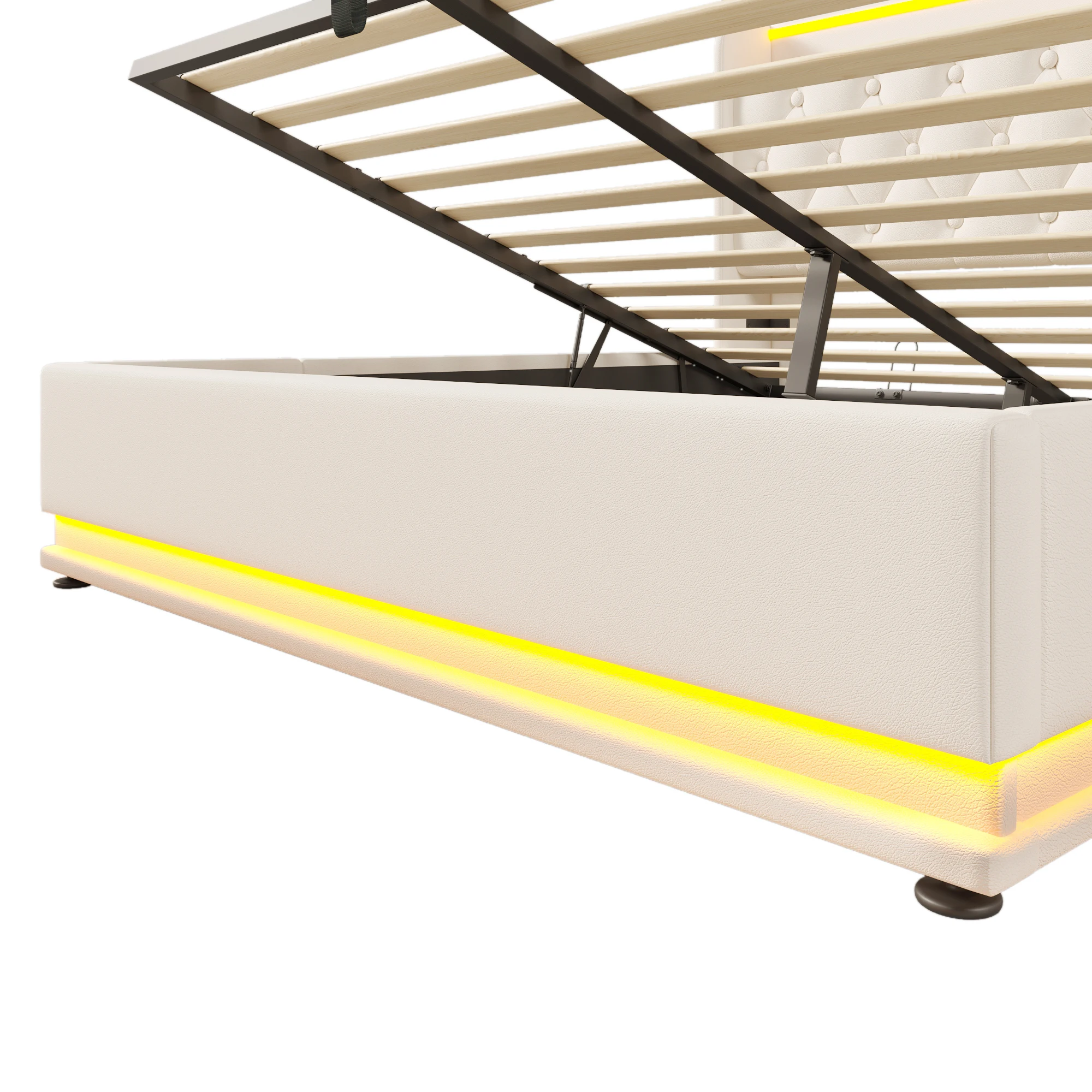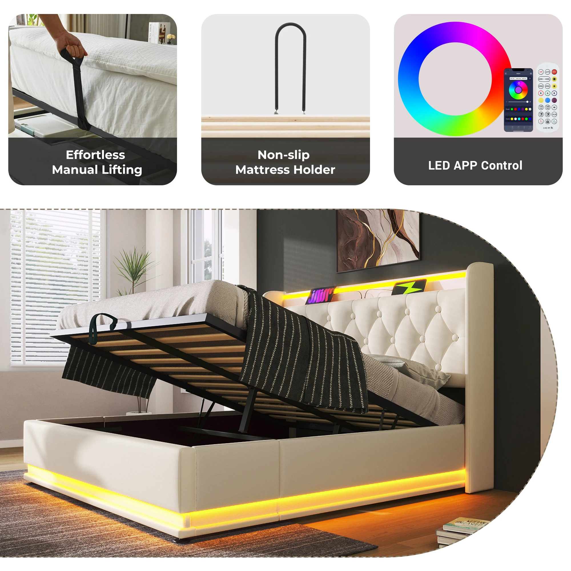 【MULTIPLE STORAGE SPACES】Shelves at the head of the bed keep everyday items handy and within easy reach. The hydraulic bed has a unique, high-quality hydraulic storage design that provides ample storage space under the bed, which can be easily lifted up or closed with the help of the pull straps. It is perfect for storing bulky and rarely used items.