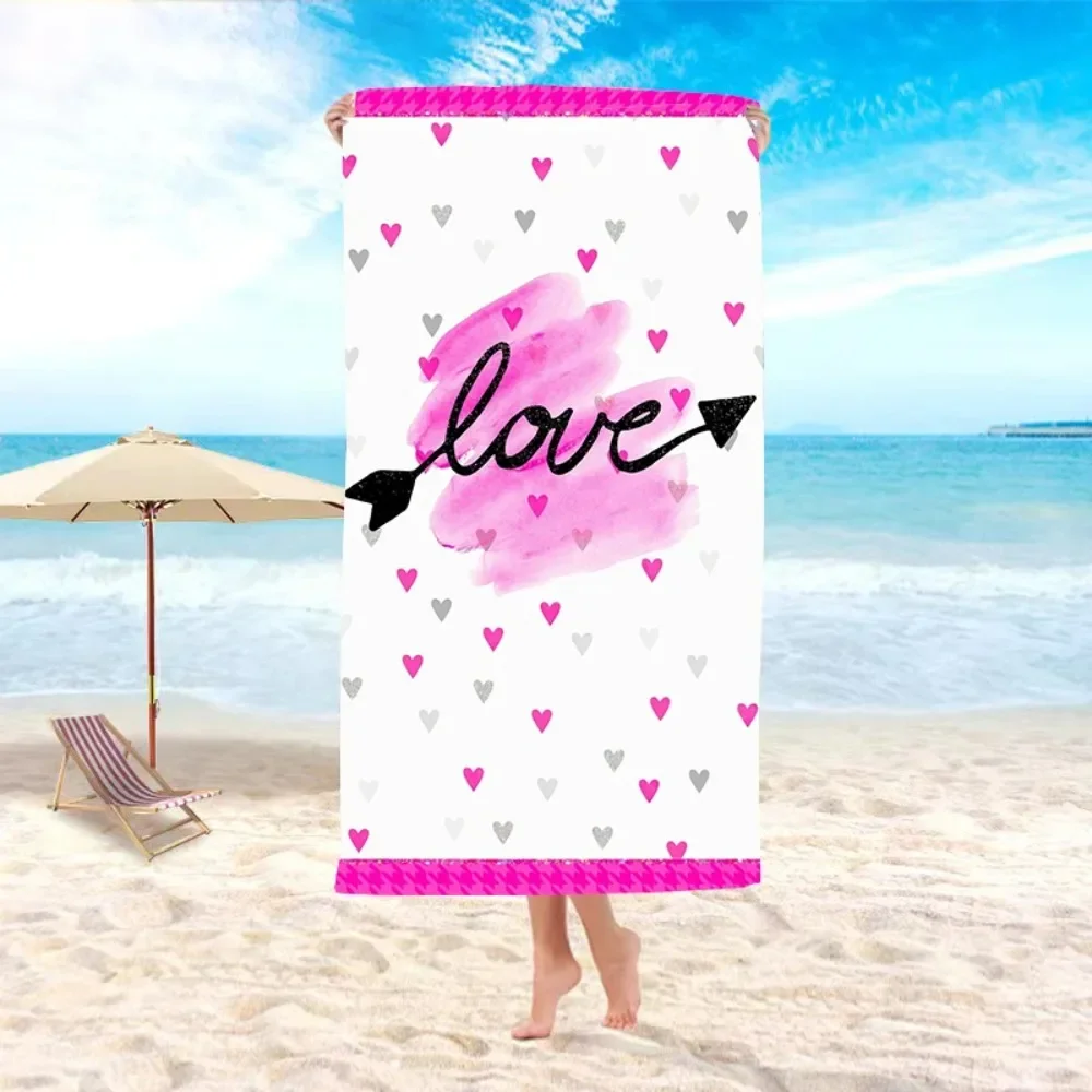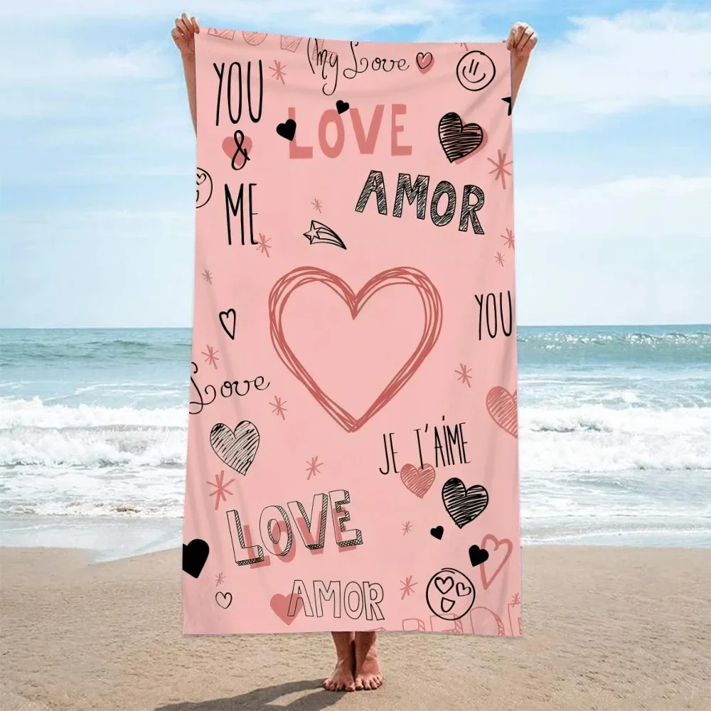 Pink I Love You Beach Towels Sport Fast Drying Quick-drying Super Absorbent Large Ultra Comfort Adults Absorbent Beach Towels