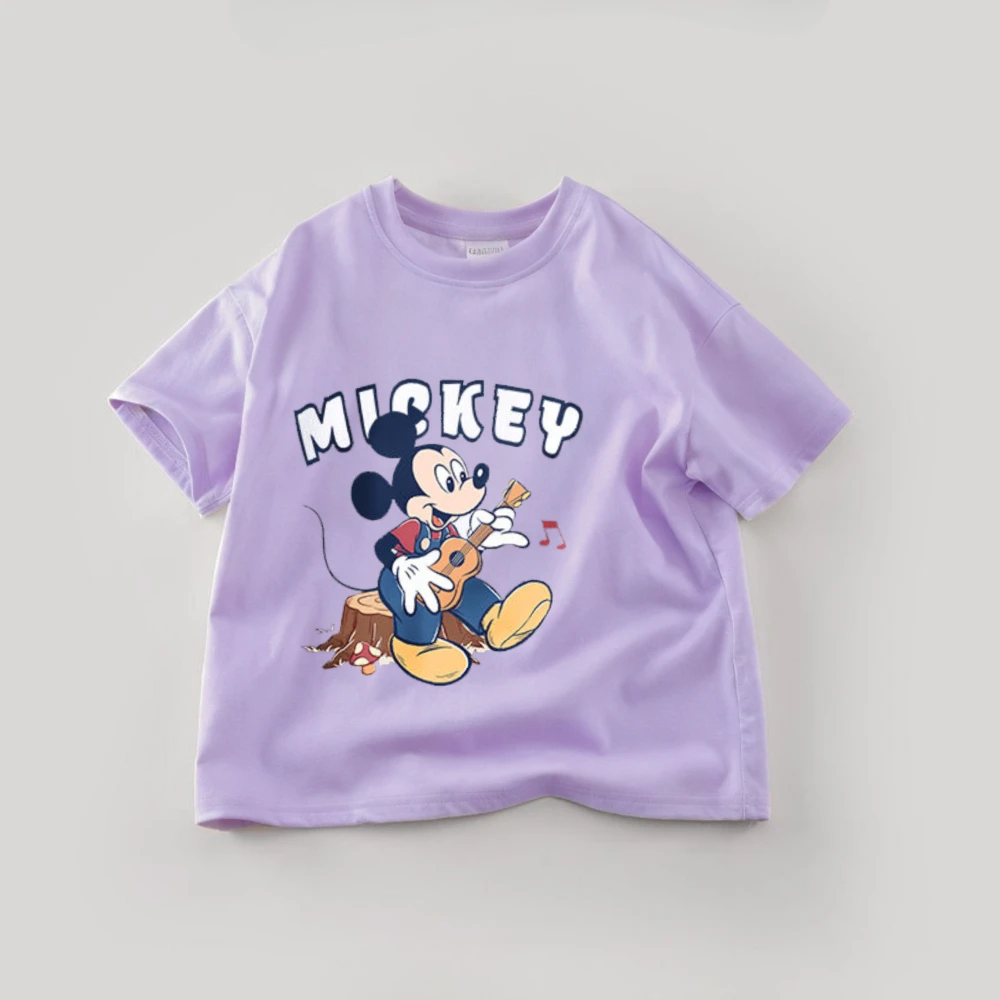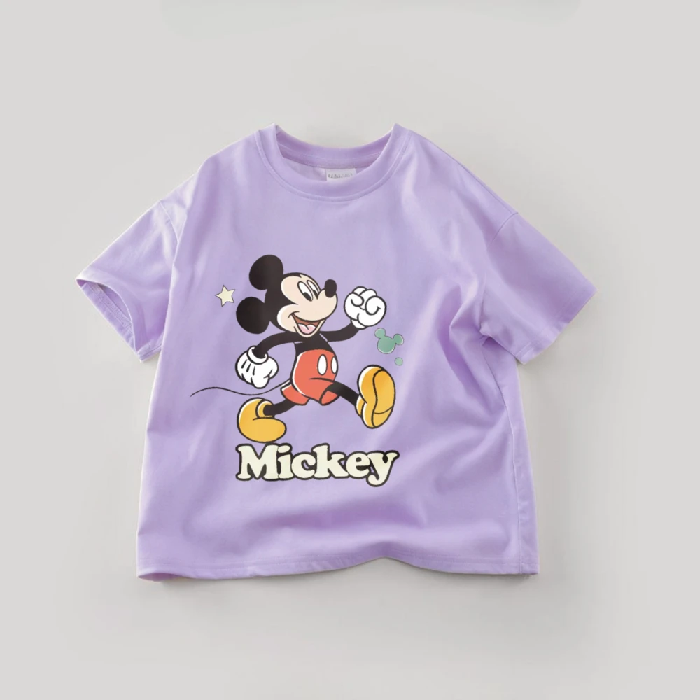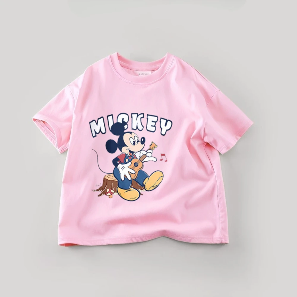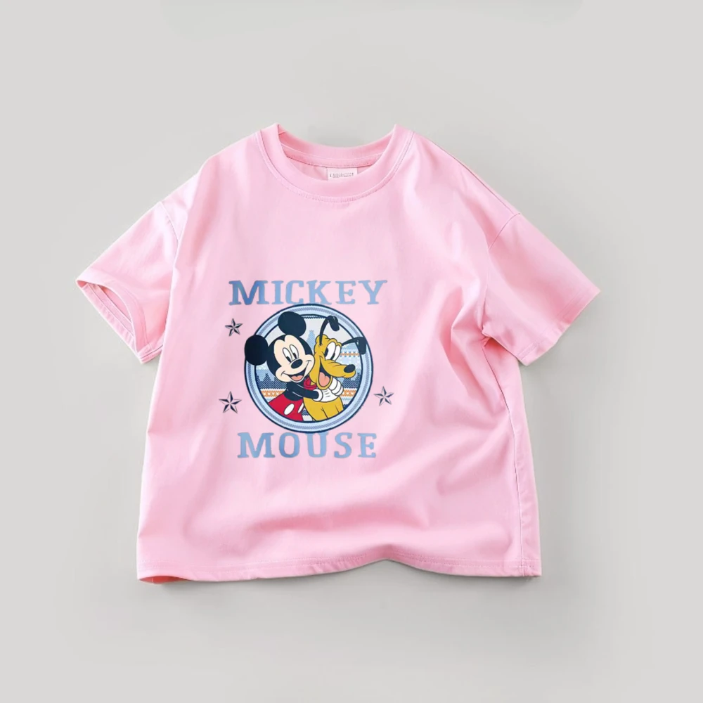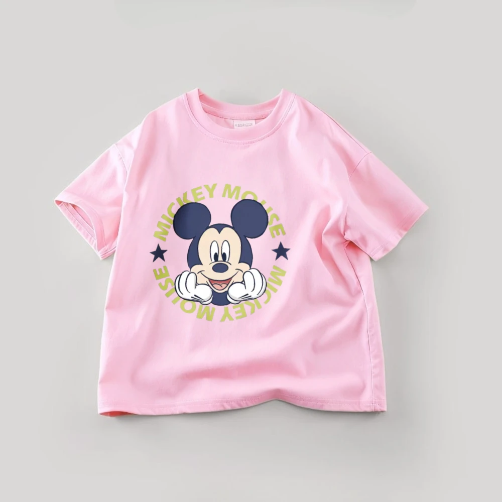 Pink Print Mickey Tees Short Sleeve Tops Baby Girls Clothing Summer Solid Color Fashion Kids Cartoon T-shirt Children’s Tshirts
