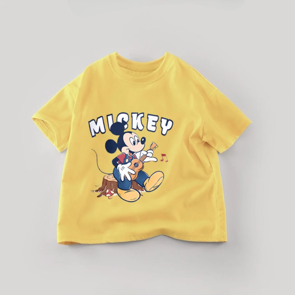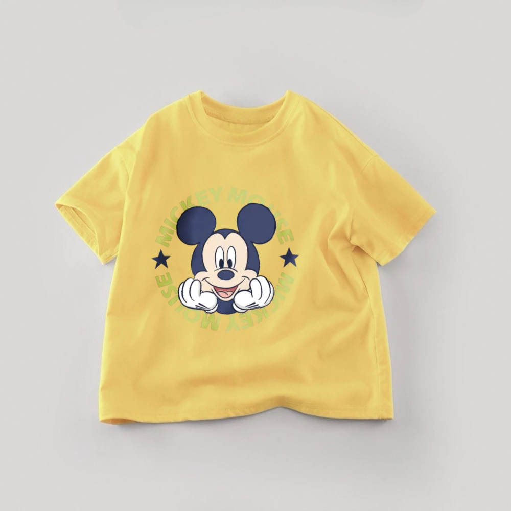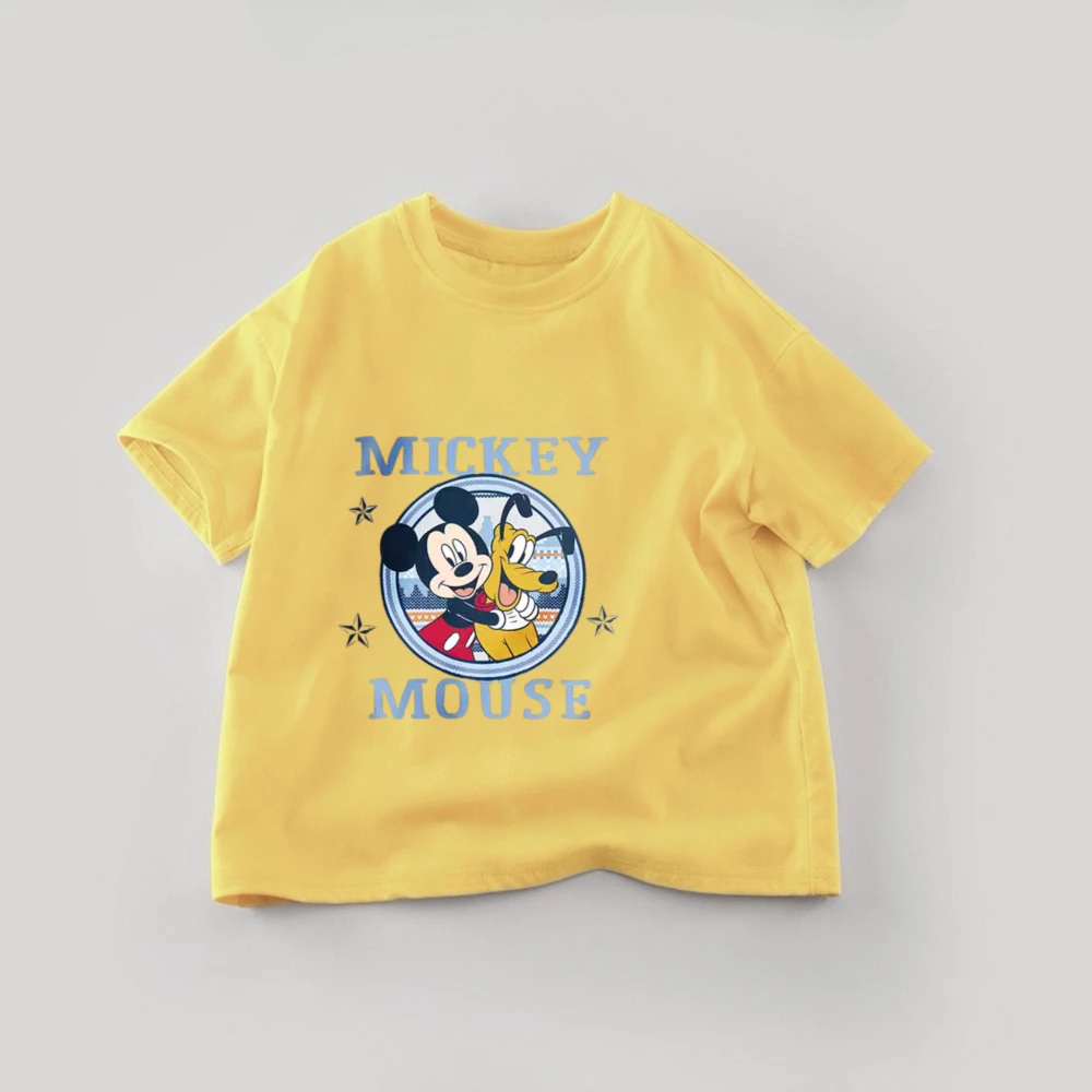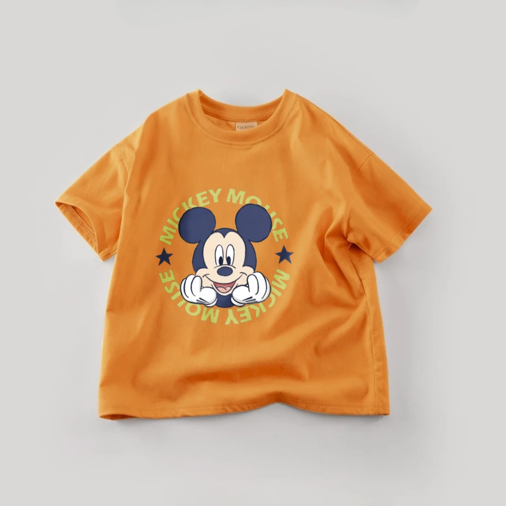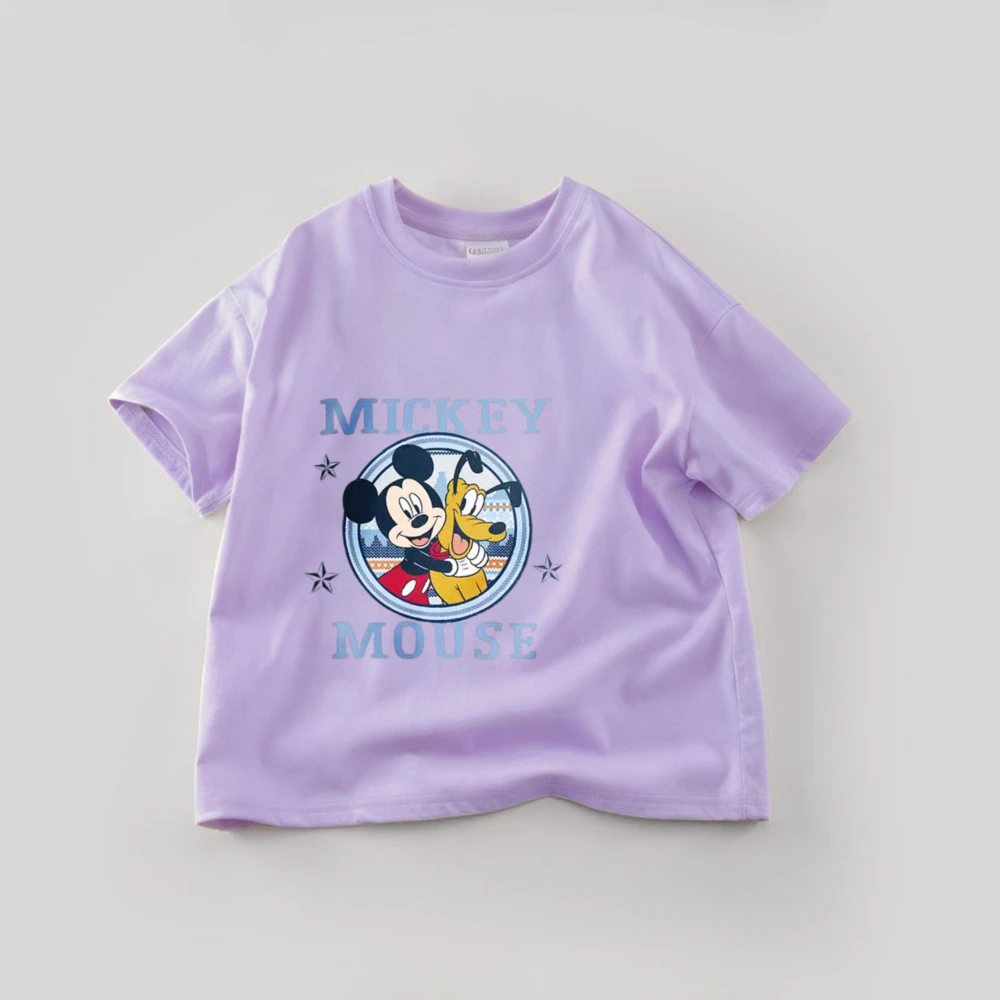 Pink Print Mickey Tees Short Sleeve Tops Baby Girls Clothing Summer Solid Color Fashion Kids Cartoon T-shirt Children’s Tshirts